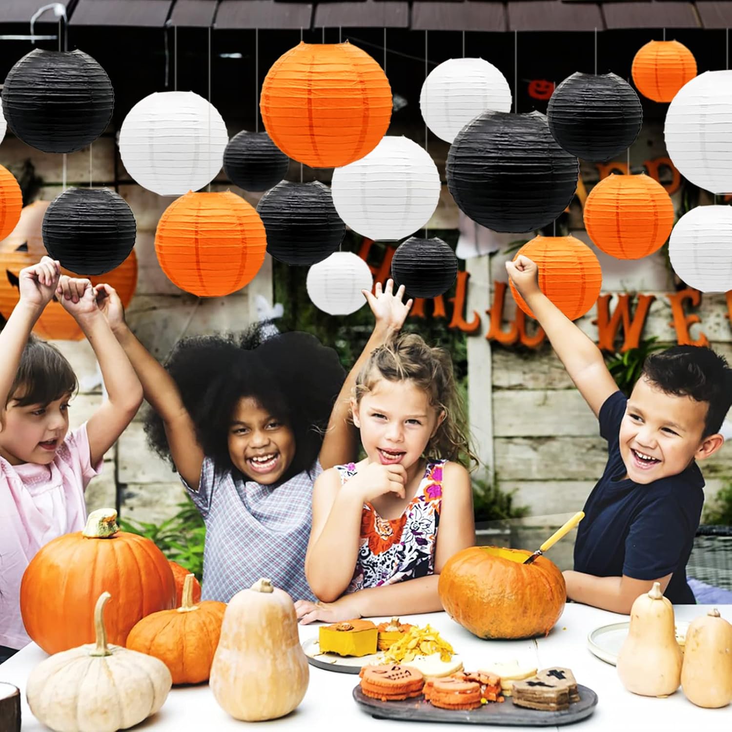 - ORANGE WHITE BALCK THEME PARTY DECOR - Paper lanterns are suitable for children's DIY activities, Halloween birthday party, Graduation party, also suitable for events such as wedding party decoration, birthday party for adults, Thanksgiving party, friendsgiving decorations, fall party, and office halloween party , outdoor BBQ, classroom, celebrations, market decoration summer garden party and other theme parties. You can mix and match the lanterns as you like