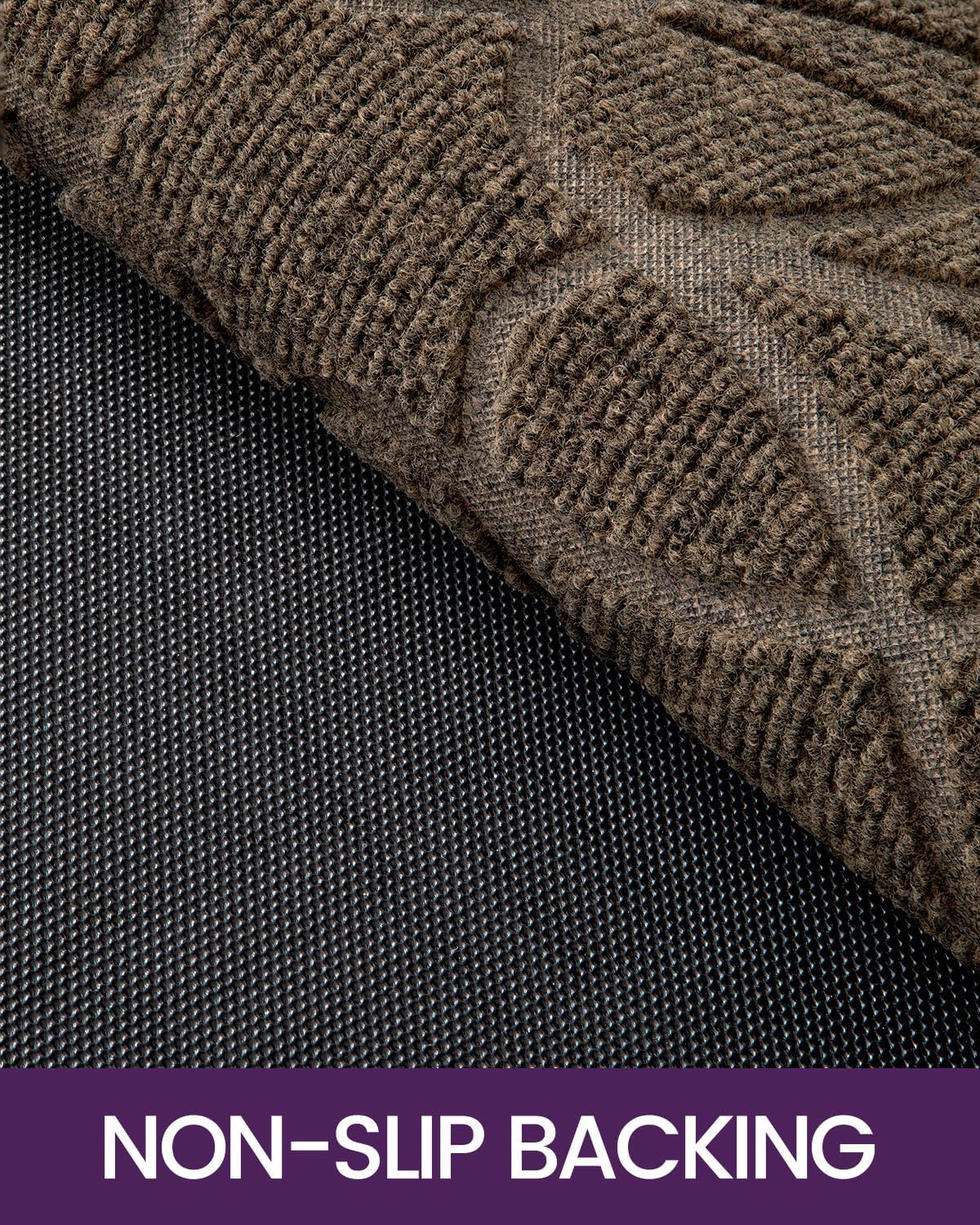 DEXI Front Door Mat Outside Entrance, Heavy Duty Non Slip Low Profile Doormat for Entryway, Trap Dirt and Moisture Welcome Mats, Easy Clean, Patio, Garage, 4x2, Brown