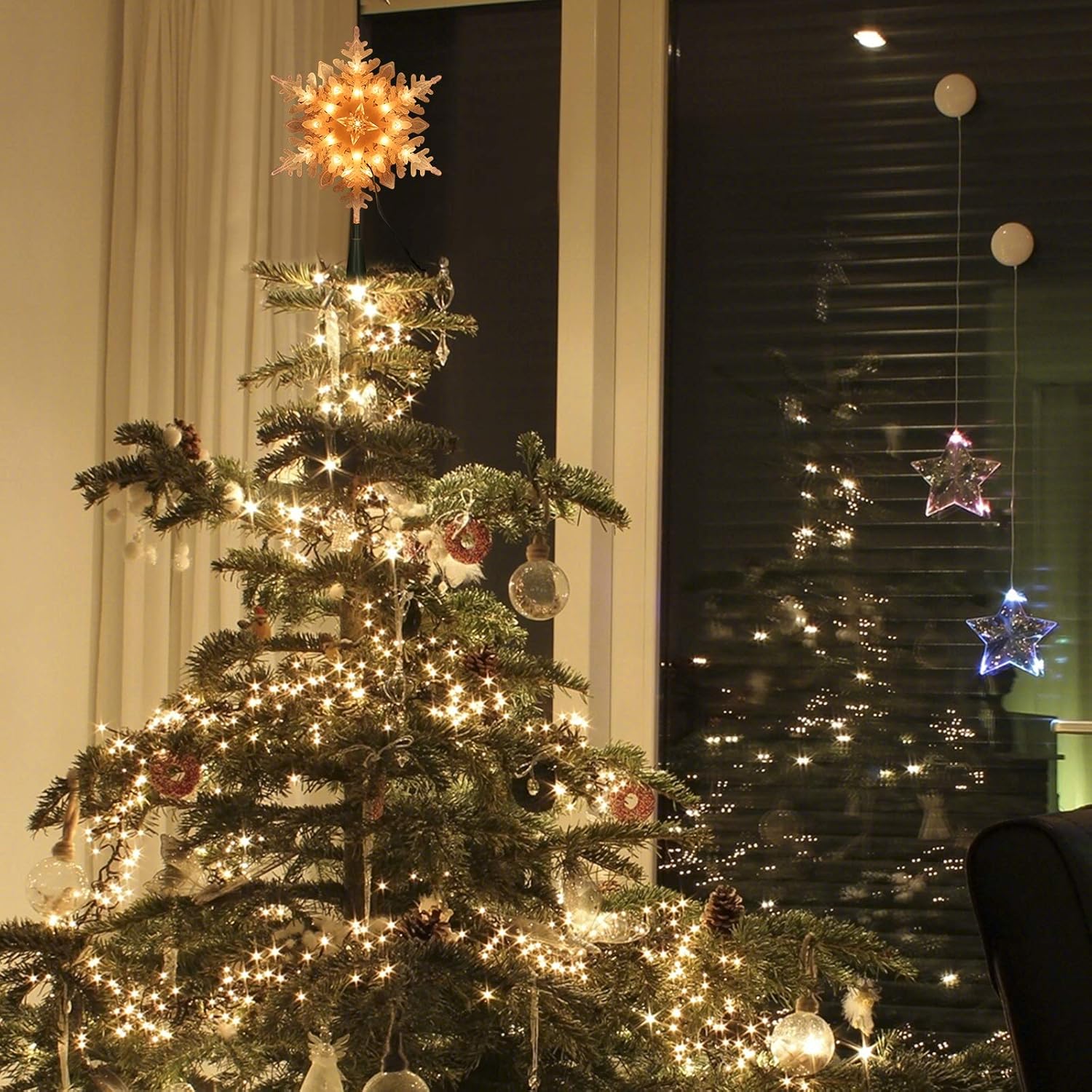 - Wide Application: Our snowflake tree topper lights are suitable for indoor decoration for various occasions, such as Christmas, Halloween, Thanksgiving, holiday parties, family dances, shopping mall decorations, birthday parties, weddings etc. Customer Service: If you have any questions about our tree top lights, please feel free to contact us, we will try our best to help you solve any problems.