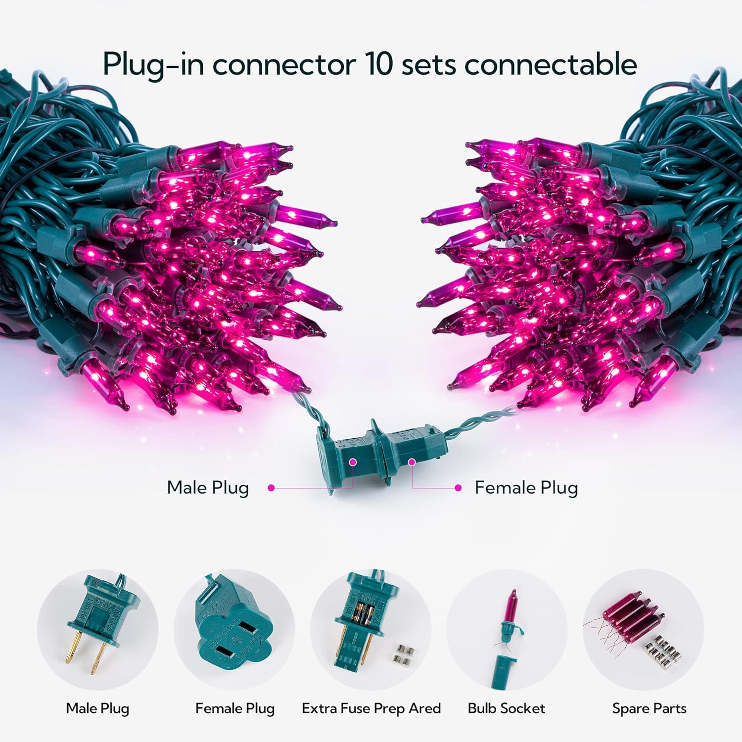 - ๐ป50 Vibrant Lights with Perfect After Sale :Old-fashion purple incandescent Halloween light set, creates a warm and festive atmosphere, surely lights up your house, let your home become a fantastic sight to behold in your neighborhood! With green wire, ideal for a tree, bedroom, patio decorations!If you have any reason you don't enjoy it, just send us a message and we will refund 100% or replace your purchase.