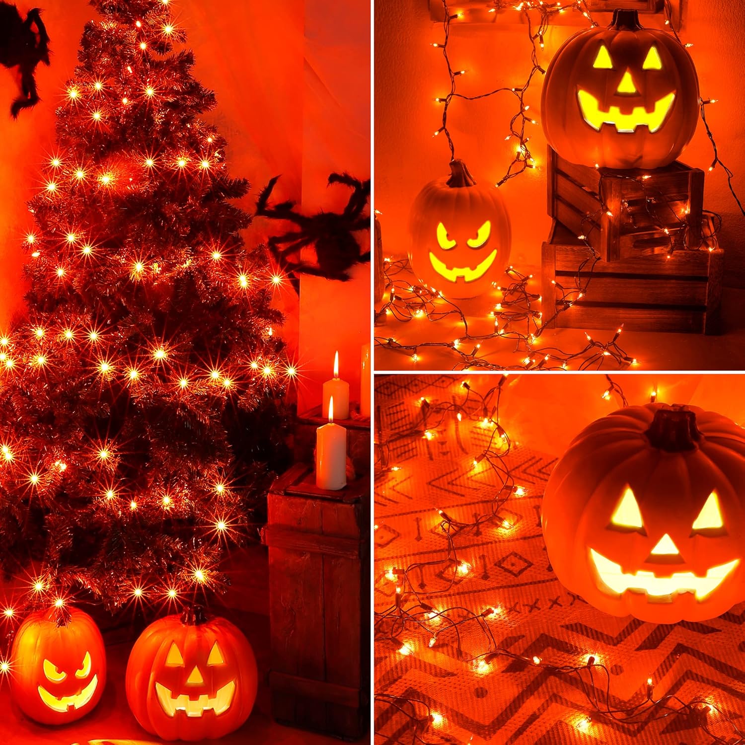 - ♥2 Pack Clear Halloween Lights:Woohaha Incandescent halloween string lights with 2 pack 50Count Orange Lights,13feets length and each set includes 4 Extra Bulbs & 4 Spare Fuses.Eco-friendly cable material,superior quality and 100% UL certification.Perfect for any indoor and outdoor decor.