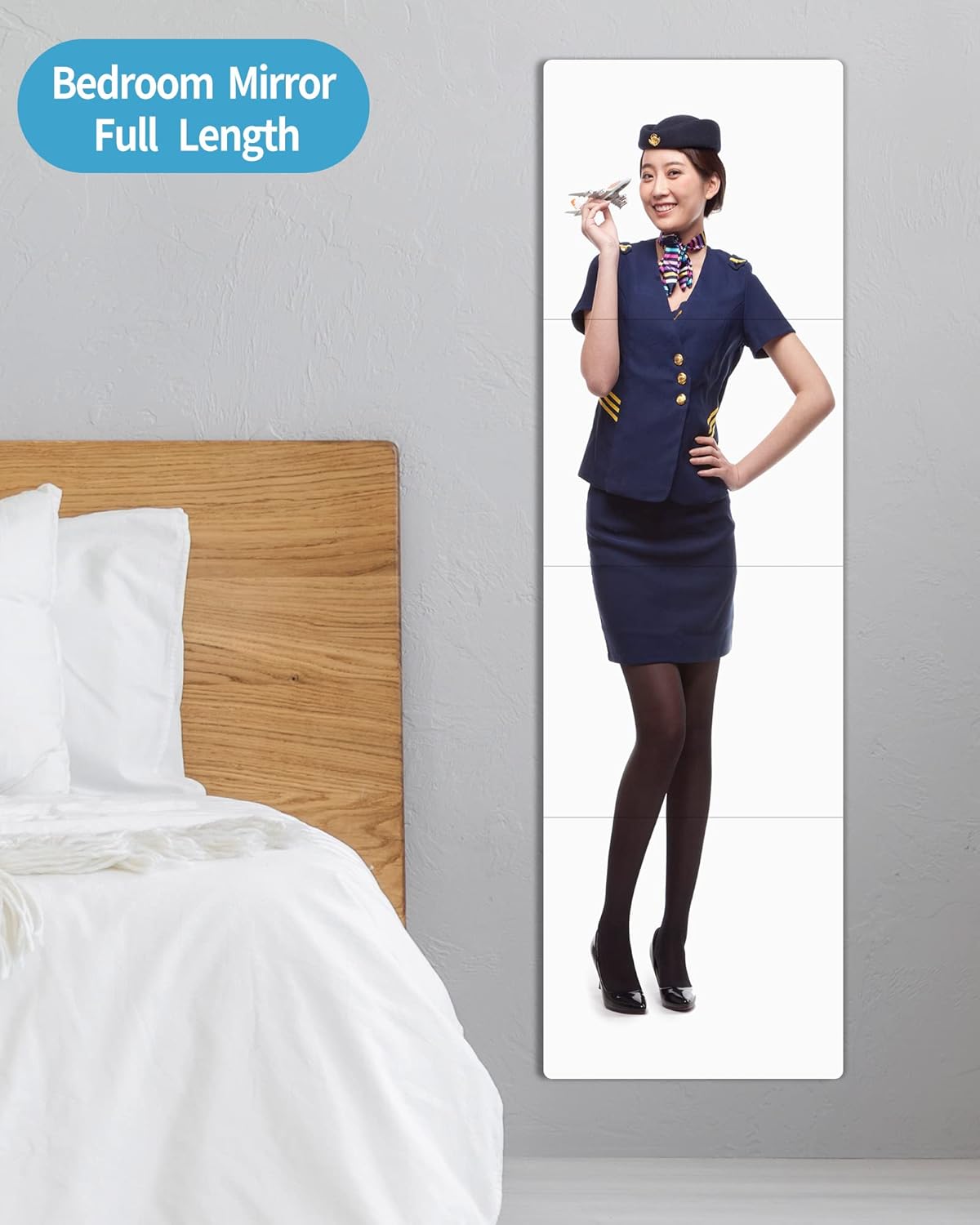 - ( Super Thick ): Full length mirror thickness: 0.12 inch, mirror full length about 48 inch L x 12 inch W, espejos para dormitorio ( 4 Pcs 12 x12 inch ), because our wall mirror full length thickness is 0.12 inch thick, so the definition is very high, door mirror the image is clear and undistorted