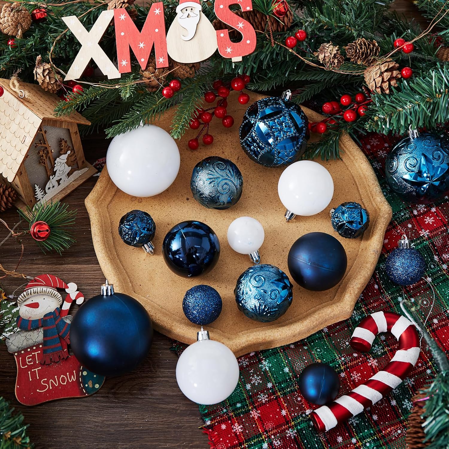 87-Pack Shatterproof Christmas Ball Ornaments Set, Christmas Tree Decorations with Hand-held Gift Package for Xmas Tree Holiday Wedding Party (Blue)