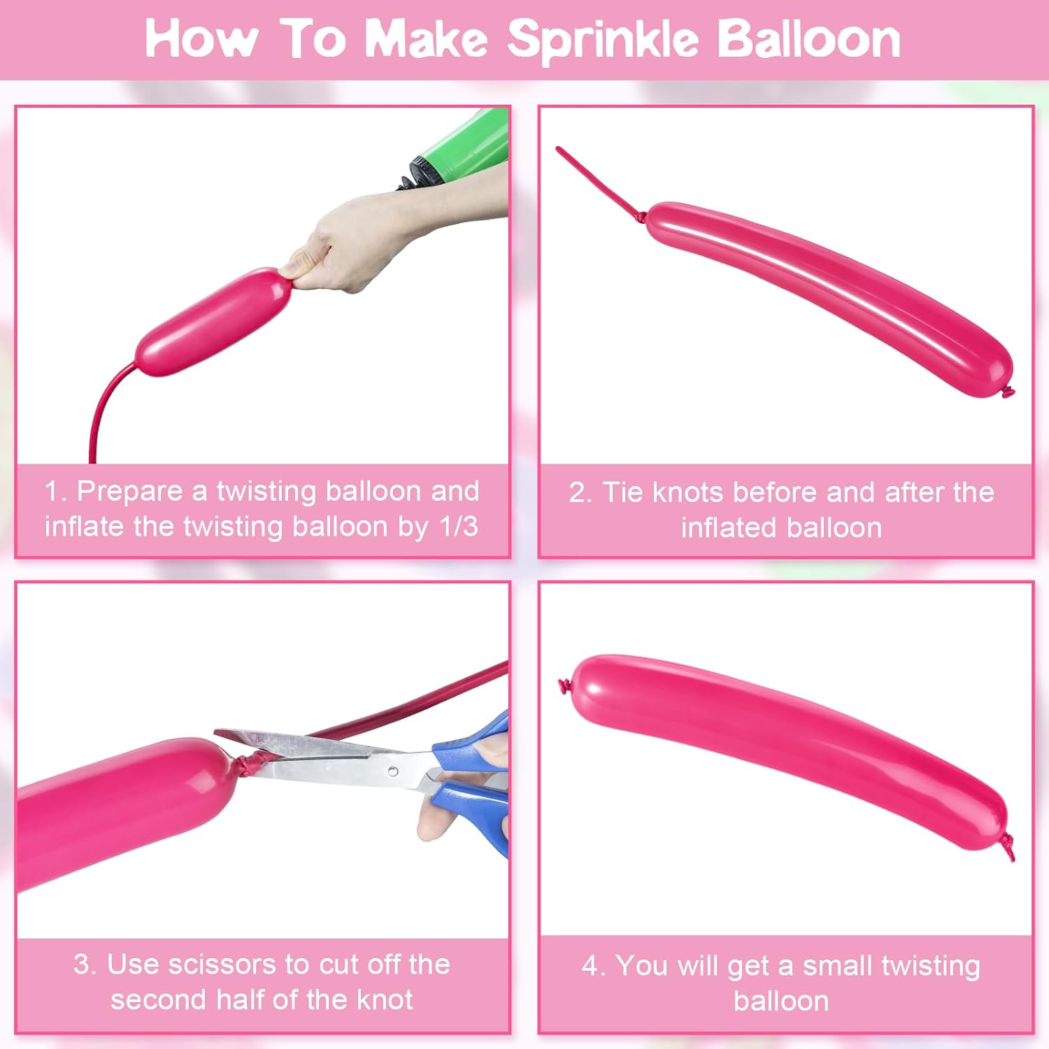 - Donut Birthday Party Decorations:3pcs donut foil balloons,1pcs ice cream foil balloons, 5pcs 12" pastel confetti balloons, 15pcs 12" Pearlescent balloons(5light pink, 5aqua blue, 5light purple), 60pcs 10" pastel balloons(15pink, 15purple, 15aqua blue, 15yellow), 5pcs 10" metallic gold balloons, 40pcs 5" rainbow balloons(10pink, 10purple, 10aqua blue, 10yellow), 6pcs twisting balloons(2purple, 2aqua blue, 2rose red) and 4pcs tools