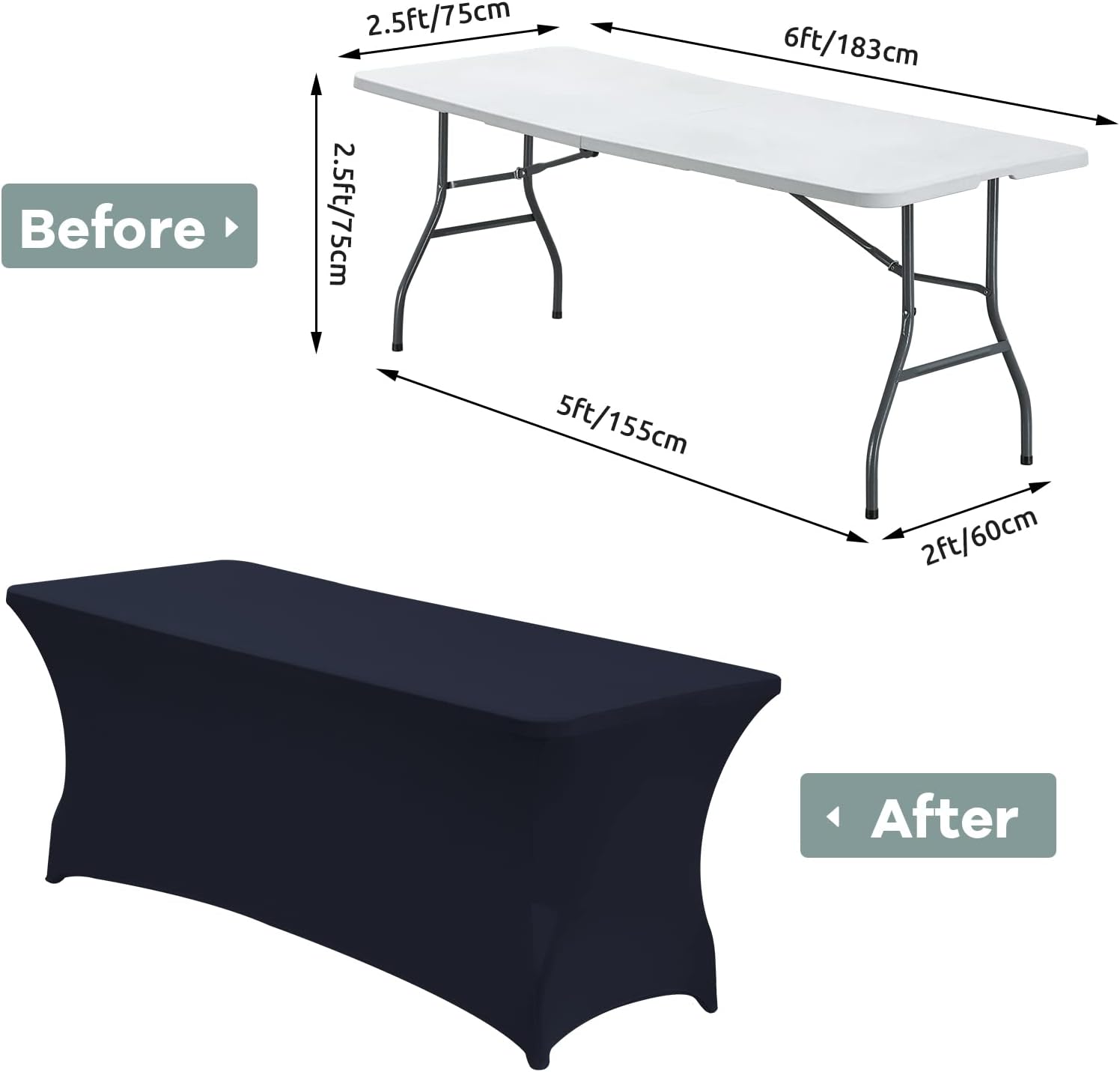 - [Dimensions]:The 6 foot tablecloth fits tables that are 72" Length X 30" Width X 30" Height; It is always fitted and tight for Standard Folding Tables-Universal Rectangular Fitted Tablecloth Protector