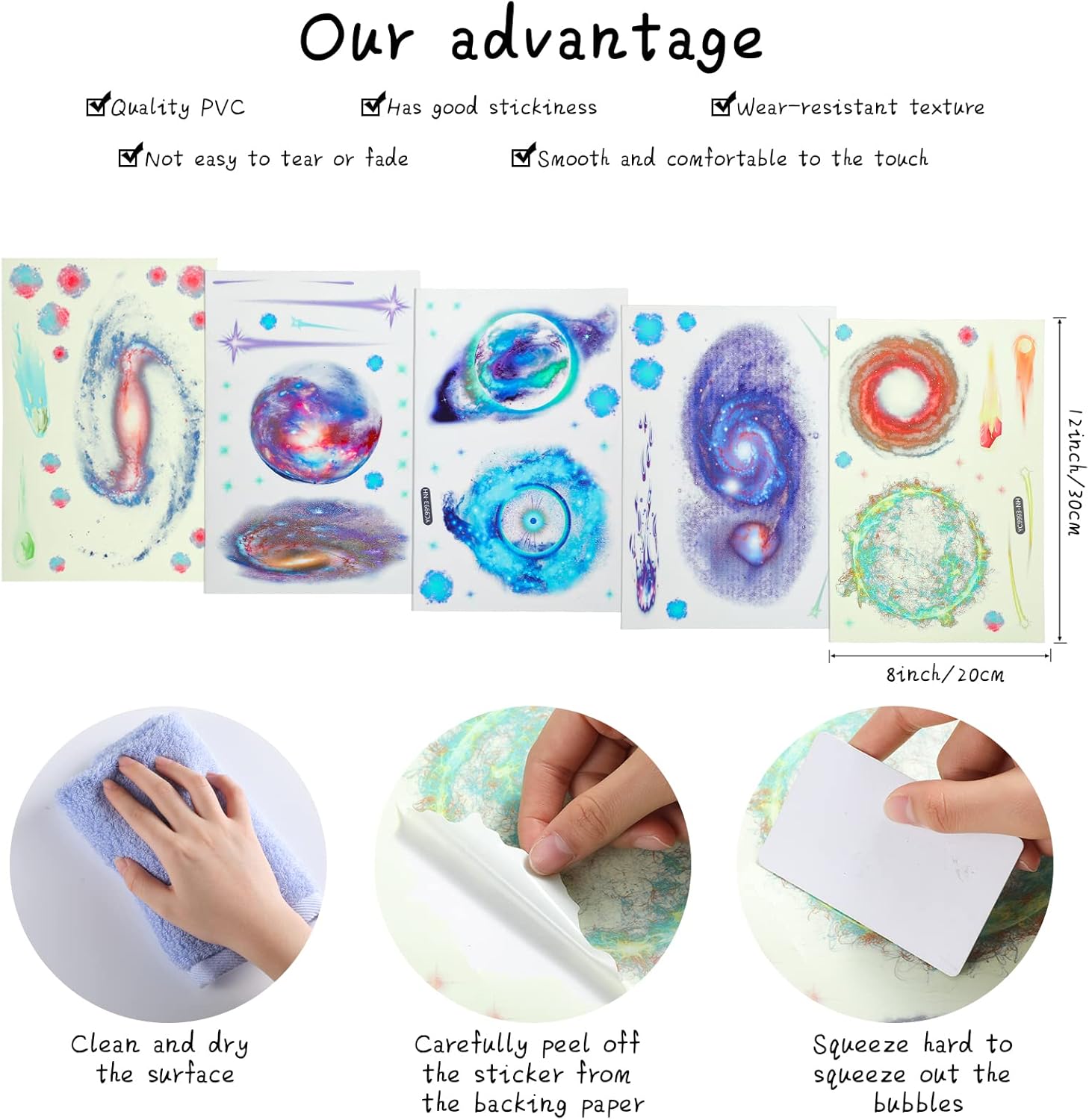 - Glow in the dark: after absorbing the light for 15-30 minutes, these glow in the dark star decals would shine in the darkness automatically, light your universe and let your immerse in the quiet and ease atmosphere; Nice tools to lull children to fall asleep