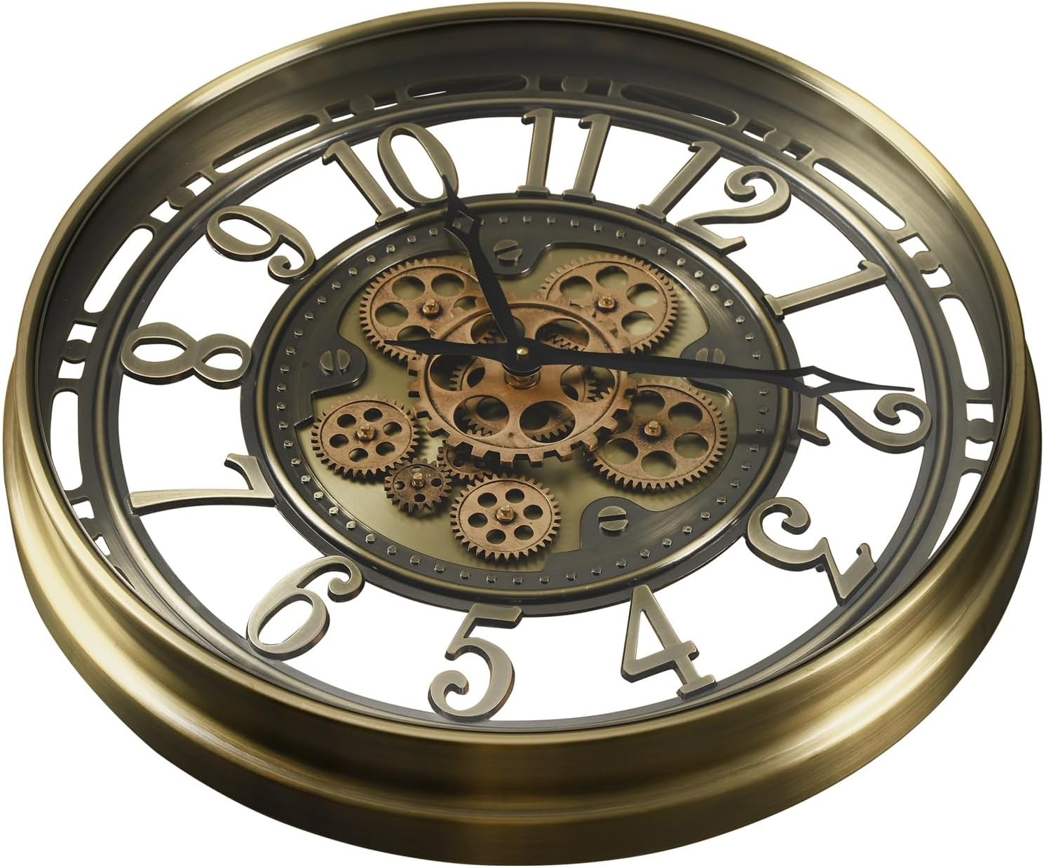 - [Modern Real Moving Gears Wall Clock] Industrial steampunk movement inspired, when you put 2 AA batteries in, various exposed aged gold/silver gears start move, definitely an eye-catching wall decor luxury antique gear clock for your modern home or office wall decor, surely capture anyone's attention
