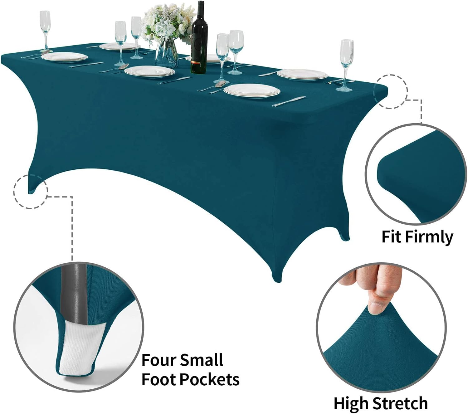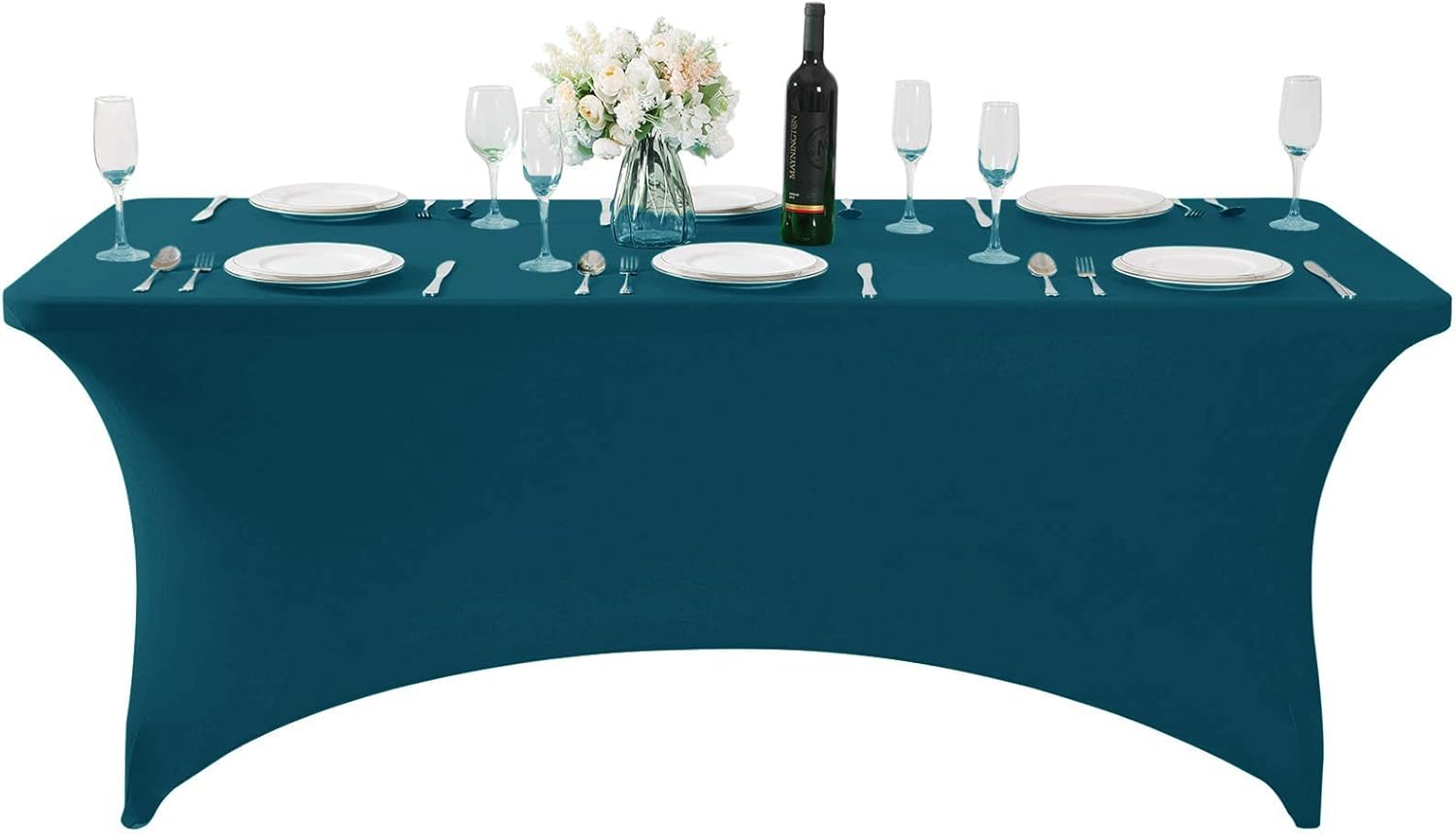 Spandex Table Cover for 6Ft or 4fT or 8ft Table Universal Fitted Stretch Tablecloth for Party, Banquet, Wedding and Events-Peacock