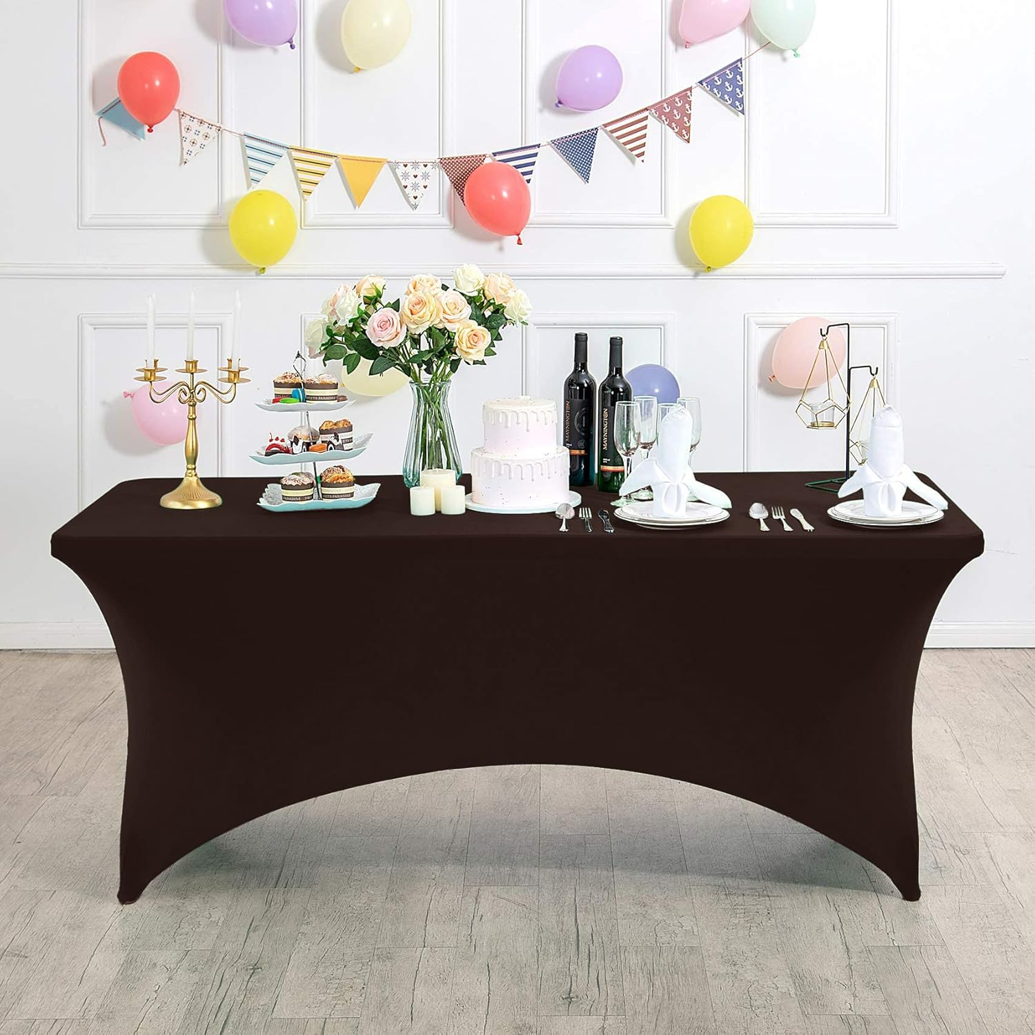Spandex Table Cover for 6Ft or 4fT or 8ft Table Universal Fitted Stretch Tablecloth for Party, Banquet, Wedding and Events-Chocolate