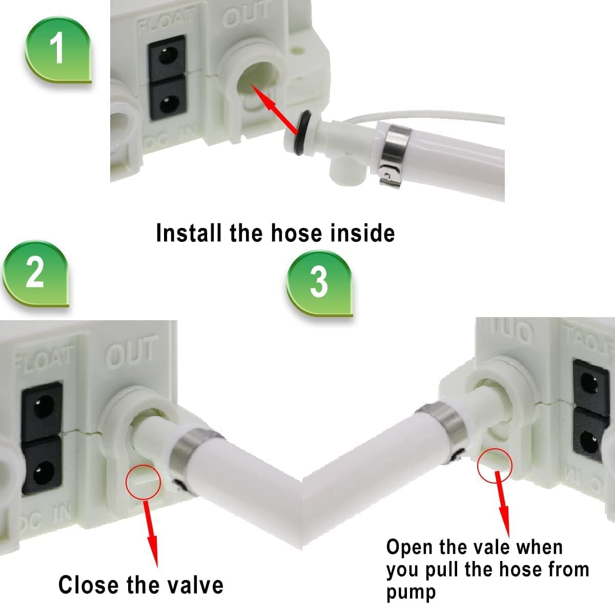 - NOTICE: ①Please follow the instructions to reinstall it when the pump does not work. ②If the power supply and motor can be started , pull out the power of the buoy and pour water to see if it can be used. Please fill water in the pump manually after long time unuse to restart the pump.