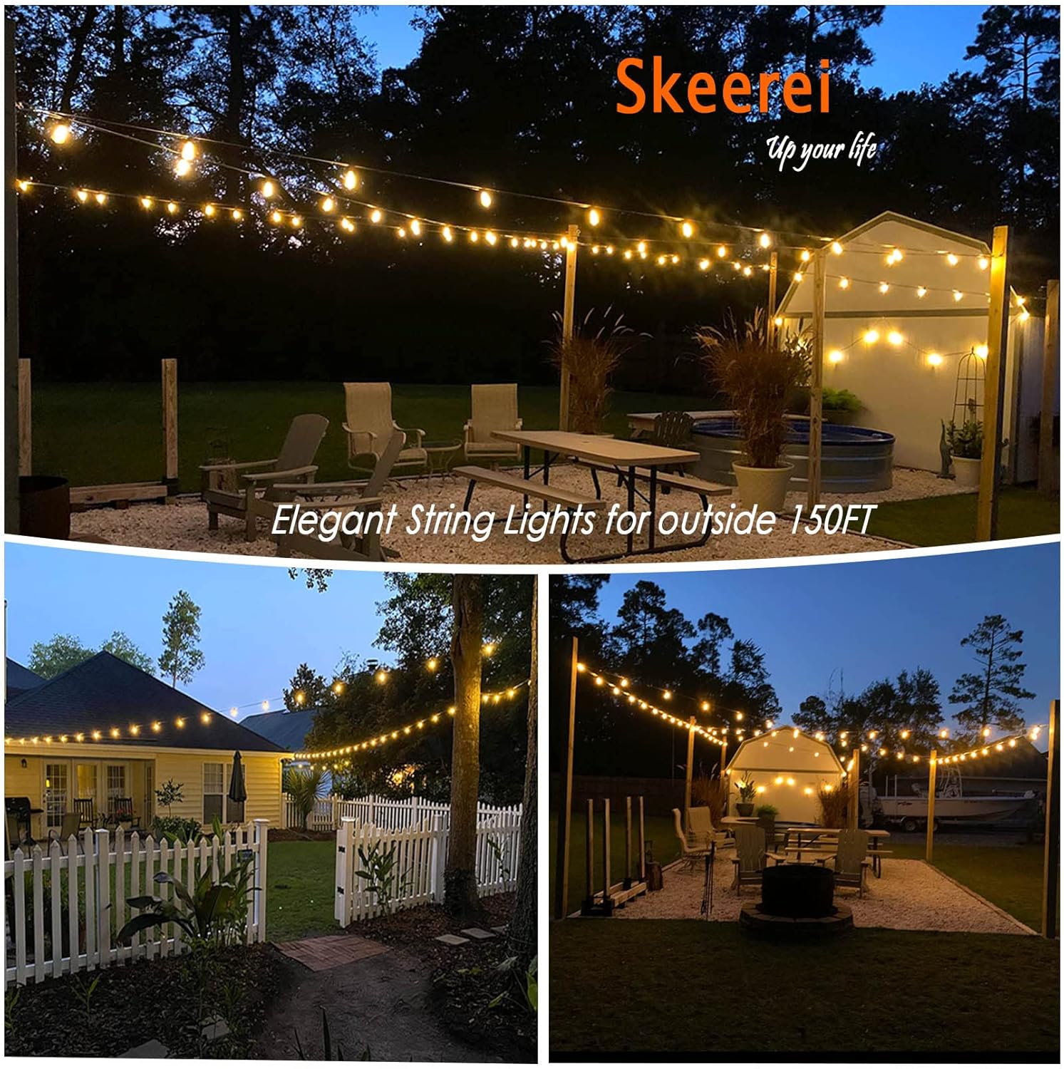 - 【Outdoor string lights for outside】This string lights for outside 150FT adopt thick wire and 45+3 unbreakable edison s14 bulbs with 2-layer protection, which ensure the outdoor patio lights durable and long lasting.