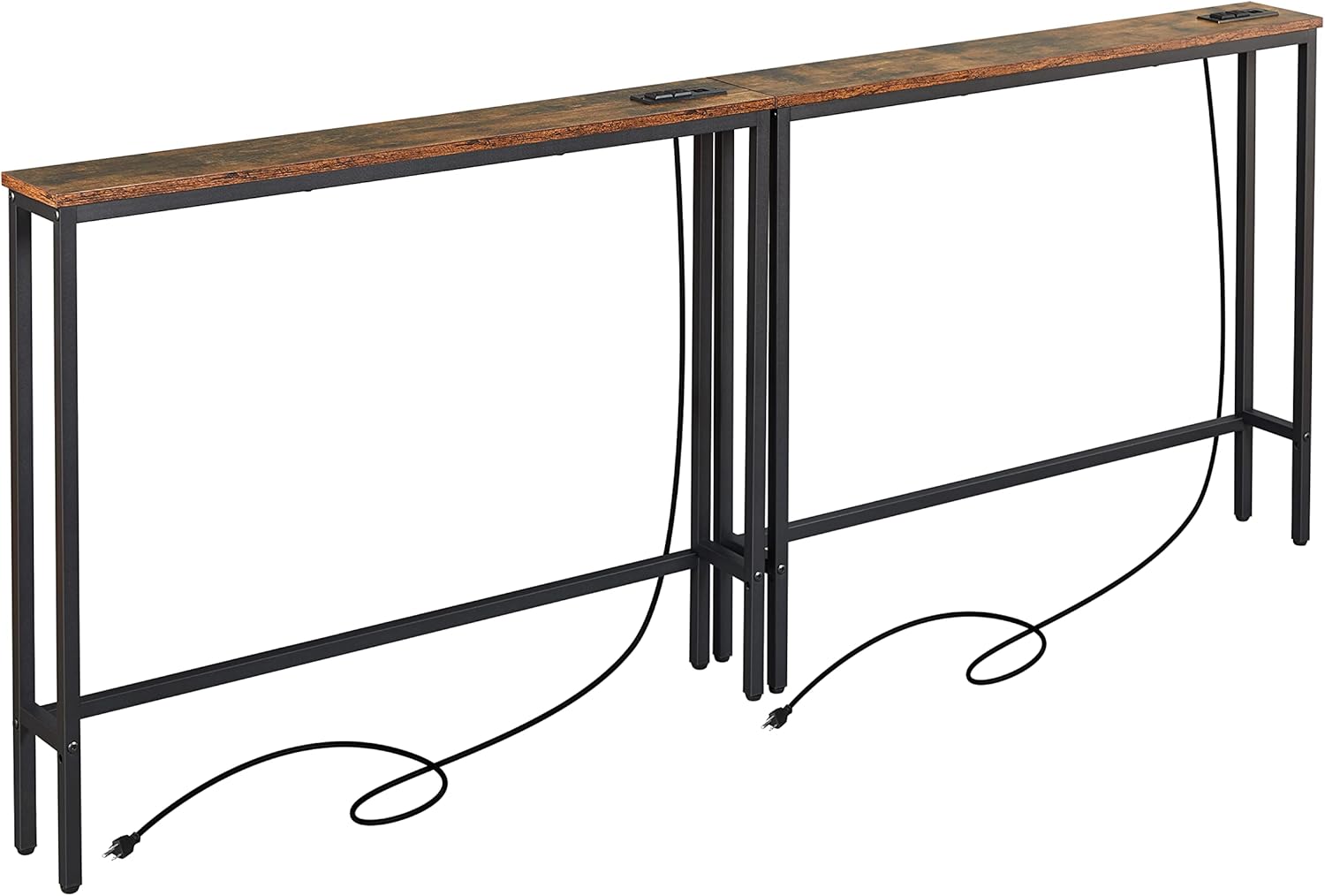 ELYKEN 2 Pack 5.9" Narrow Console Sofa Table with Power Outlets, 5.9" D x 39.4" W x 31.1" H Long Couch Table with Metal Frame and Charge Station with 6.5’ Extension Cord, Rustic Brown