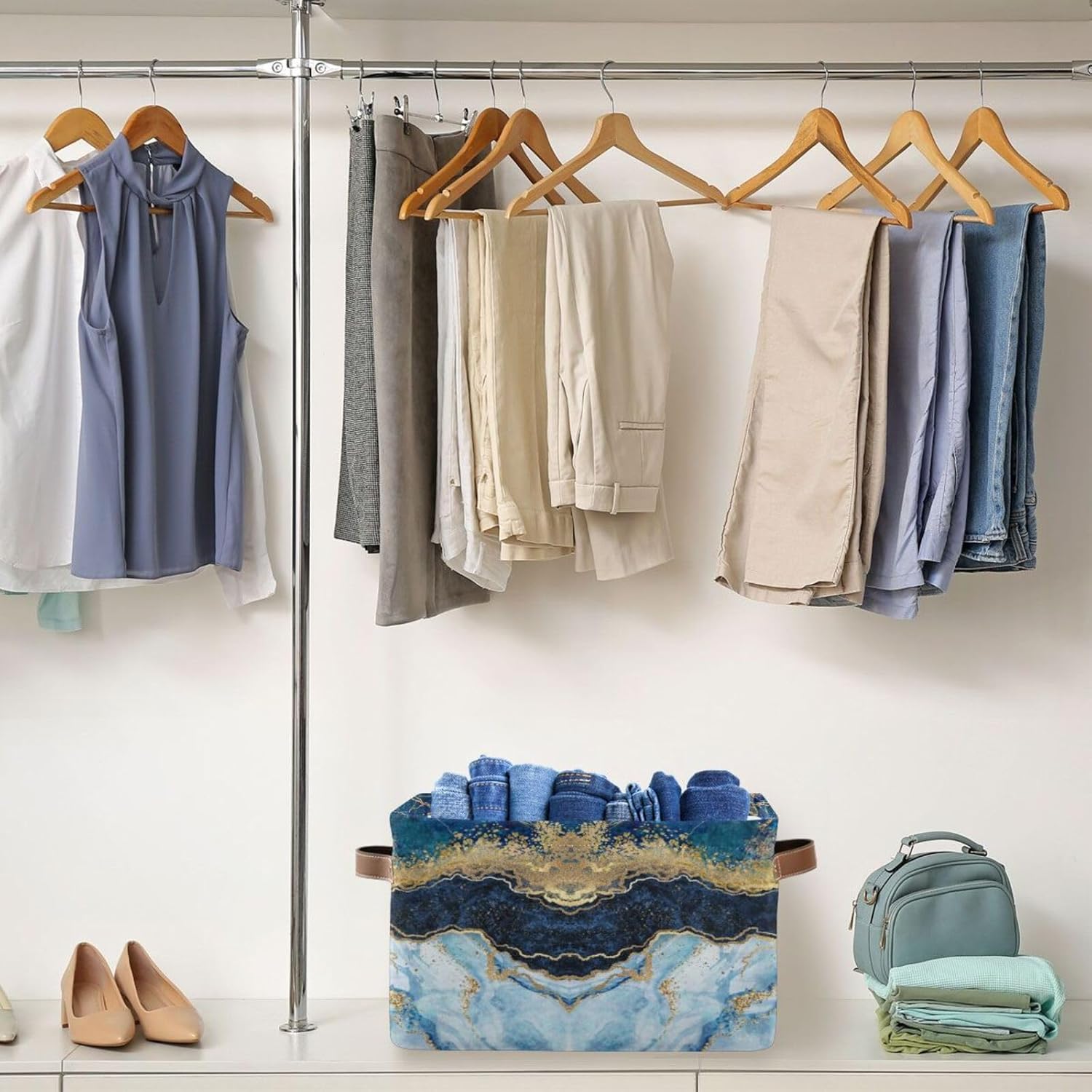 susiyo Foldable Storage Bins Storage Cubes Bin Baskets for Shelves with Handles Decorative Fabric Storage Baskets for Organizing Shelves Closet Nursery Home Toy,Blue Marble