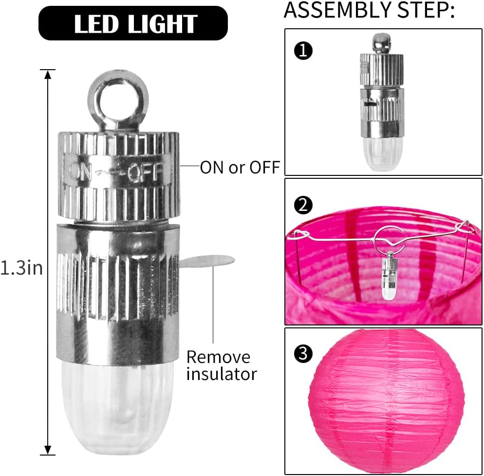 - PAPER LANTERN SET INCLUDED- Pink party decorations set including 6 pieces of 10 inch paper lanterns, 6 pieces of 12 inch paper lanterns, 12 pieces of battery operated mini LED lights, set comes in pink and hot pink colors