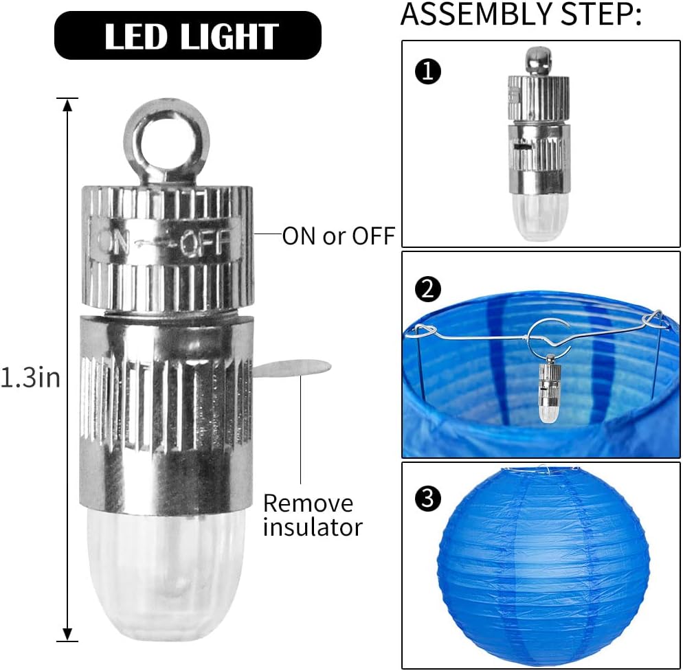 - PAPER LANTERN SET INCLUDED- Blue party decorations set including 6 pieces of 10 inch paper lanterns, 6 pieces of 12 inch paper lanterns, 12 pieces of battery operated mini LED lights, set comes in pink and light blue colors
