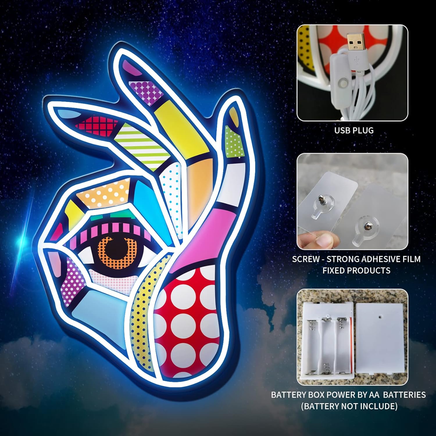 - 【USB OPERATION】- USB power supply. Battery Operated Neon Sign OK sign requires only 3 AA batteries (not included), or Insert USB interface, add personality.