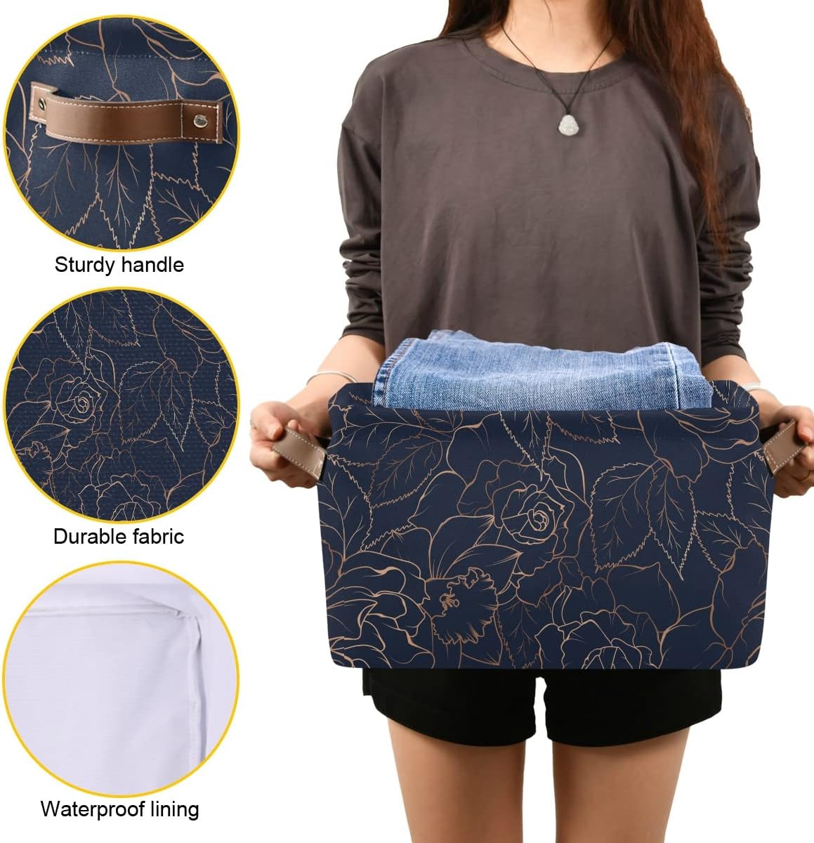 susiyo Foldable Storage Bins Storage Cubes Bin Baskets for Shelves with Handles Decorative Fabric Storage Baskets for Organizing Shelves Closet Nursery Home Toys 1 Pack,Navy Blue