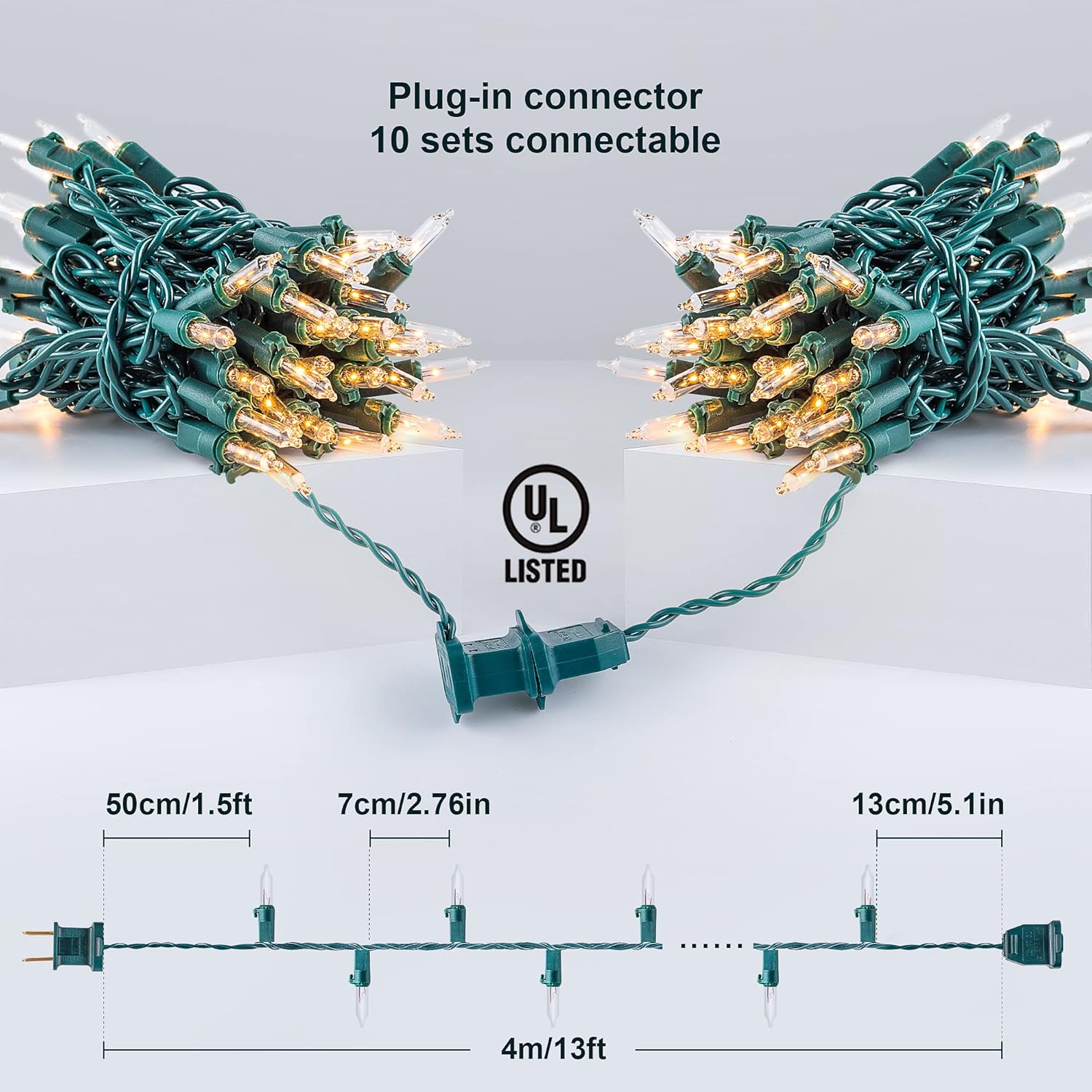 - ๐ฒConnectable Christmas Lights: Warm white string lights can be End-to-End connected. Up to 10 sets,lighting range can be extended to 130ft. With this convenient function,you can do the DIY decoration on any occasions: shopping street, Christmas, Halloween, music festival, birthday party, graduation party, garden, deck, bedroom.