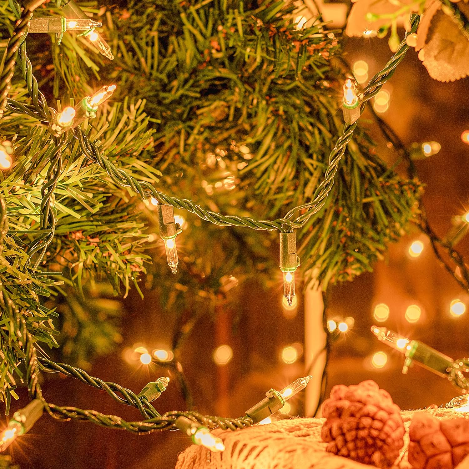 - ๐ฒ50Count Mini String Lights: Light up the upcoming Christmas with Mimigogo 13ft 50count warm white Christmas string lights is with Green Wire,which comes with 2Extra Bulbs and 2 Replacement Fuses. In addition, our wires is more durable compared with other string lights. You can use it for a long time without fear of burning it out.
