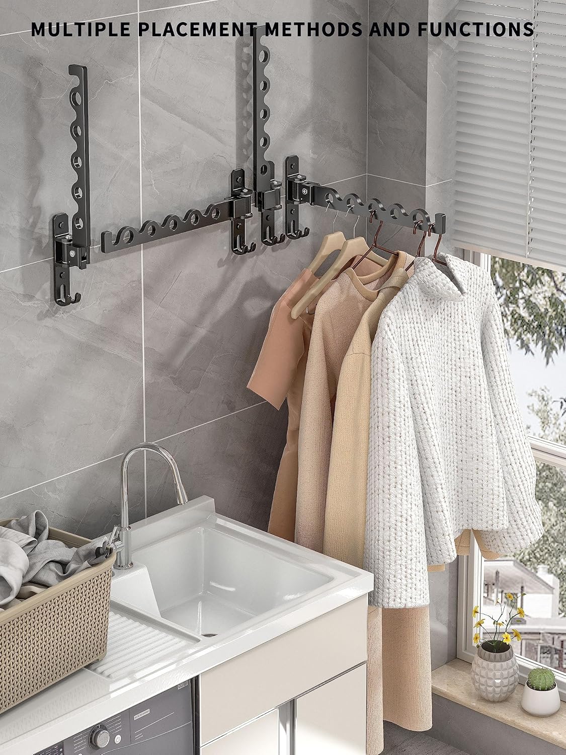 - 【MULTIPLE APPLICATION PLACES AND MODERN DESIGN SENSE】Wall hanging hangers are suitable for any place that needs hanging space, not only can be placed in bedrooms, laundry rooms, bathrooms, kitchens, but also can be installed outdoors such as balconies to save space, simple and modern The sense of design not only adds beauty to the application place, but also can be applied in every remote corner, saving you space to the greatest extent
