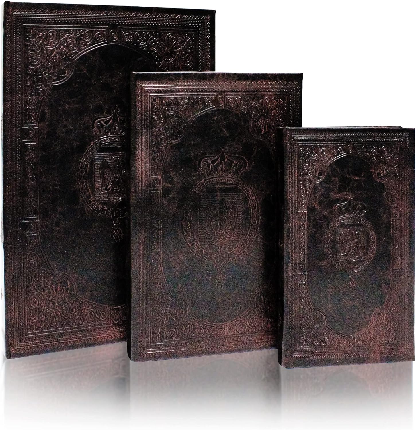 Decorative Book Box Set of 3,Vintage Style Book Shaped Storage Box,Leather Decorative Wooden Trinket Jewelry Books Boxes with Antique Embossed Pattern,Mother's Day/Graduation /Birthday Gift Idea