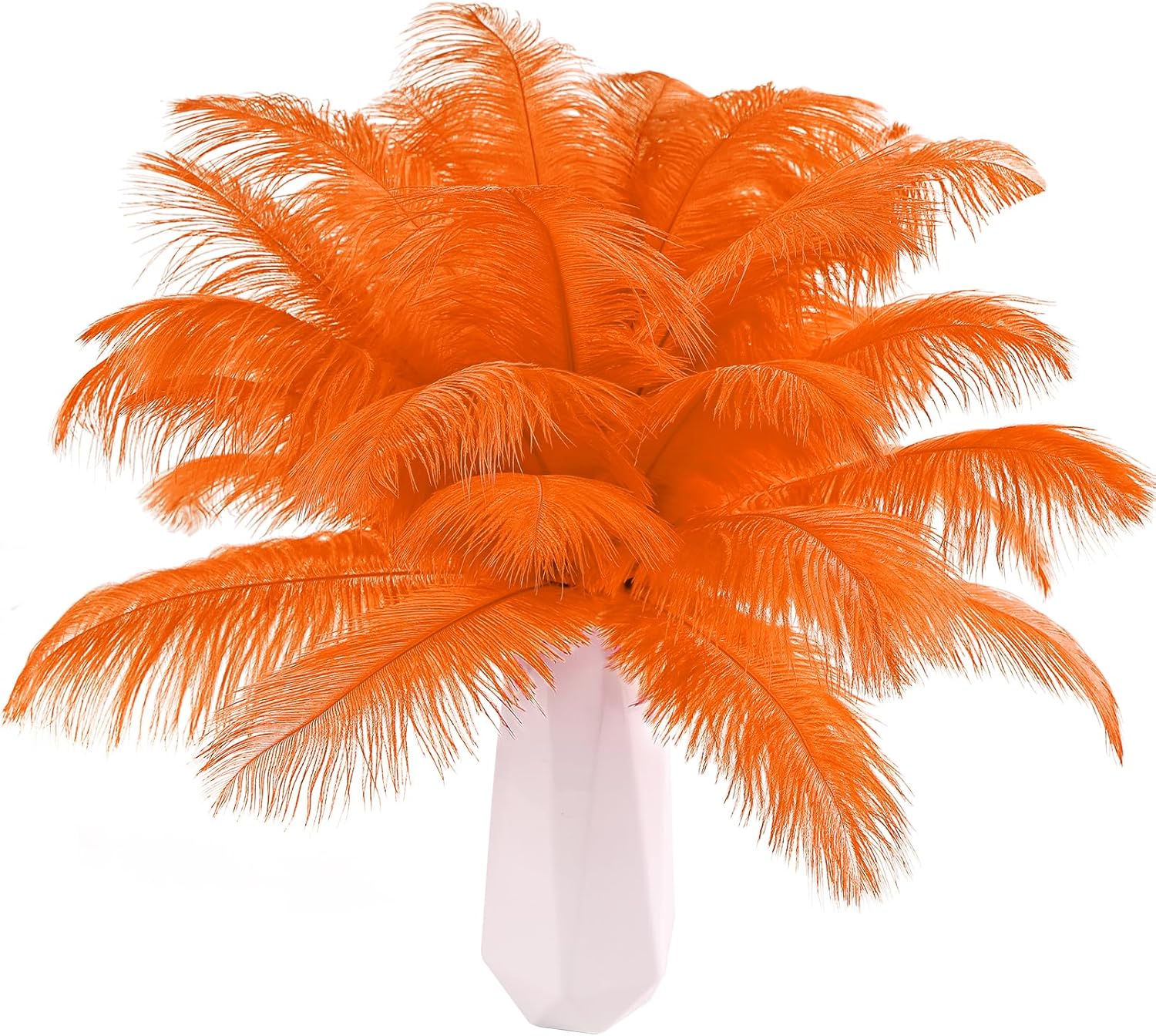 THARAHT Orange Ostrich Feathers 24pcs Natural Bulk 8-10Inch 20cm-25cm for Crafts Wedding Party Centerpieces Halloween and Home Decoration Feathers