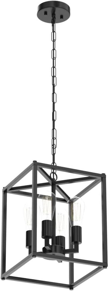 Lantern Pendant Light, 4-Light Black Chandelier,Modernized Ceiling Hanging Light Fixture for Bedroom Kitchen Island Foyer Living Room Dining Room Hallway