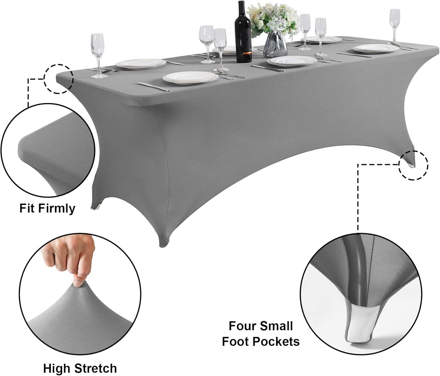 SuperO 2Pack Waterproof Spandex Table Cover for 4FT Table Universal Fitted Stretch Tablecloth for Party, Banquet, Wedding and Events-Gray