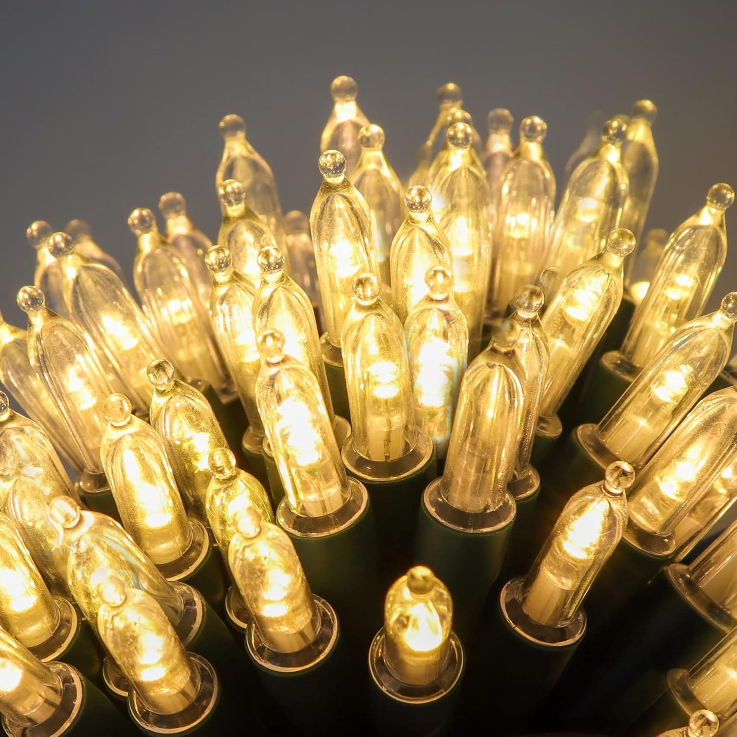 - [8 Lighting Modes]: WATERGLIDE 2 pack 50LED Christmas warm white mini string lights have 8 lighting modes for you to choose - Combination, In waves, Sequential, Slow Glow, Chasing/Flash, Slow fade, Twinkle/Flash, Steady on. Adjust the lighting modes by pressing the round button on the battery case