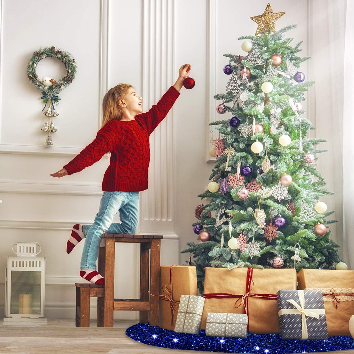 - ❄️【Sturdy Material - Royal Blue Christmas Tree Skirt】Our Chritmas sequin tree skirts are made of premium 5mm sequin fabric and thick velvet material, which can show bright color at any angle. Different from the traditional sequin Christmas trees skirt, this Santa tree mat won't fall off sequins, more elegant and shiny, adding festive fun to your home.
