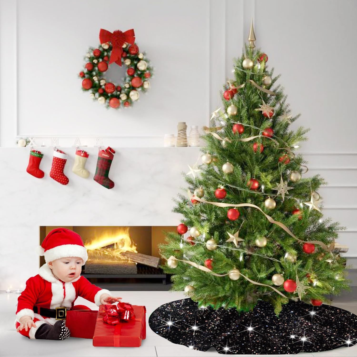 - ❄️【Sturdy Material - Black Christmas Tree Skirt】Our Christmas sequin tree skirts are made of premium 5mm sequin fabric and thick velvet material, which can show bright color at any angle. Different from the traditional sequin Santa trees skirt, this Santa tree mat won't fall off sequins, more elegant and shiny, adding festive fun to your home.
