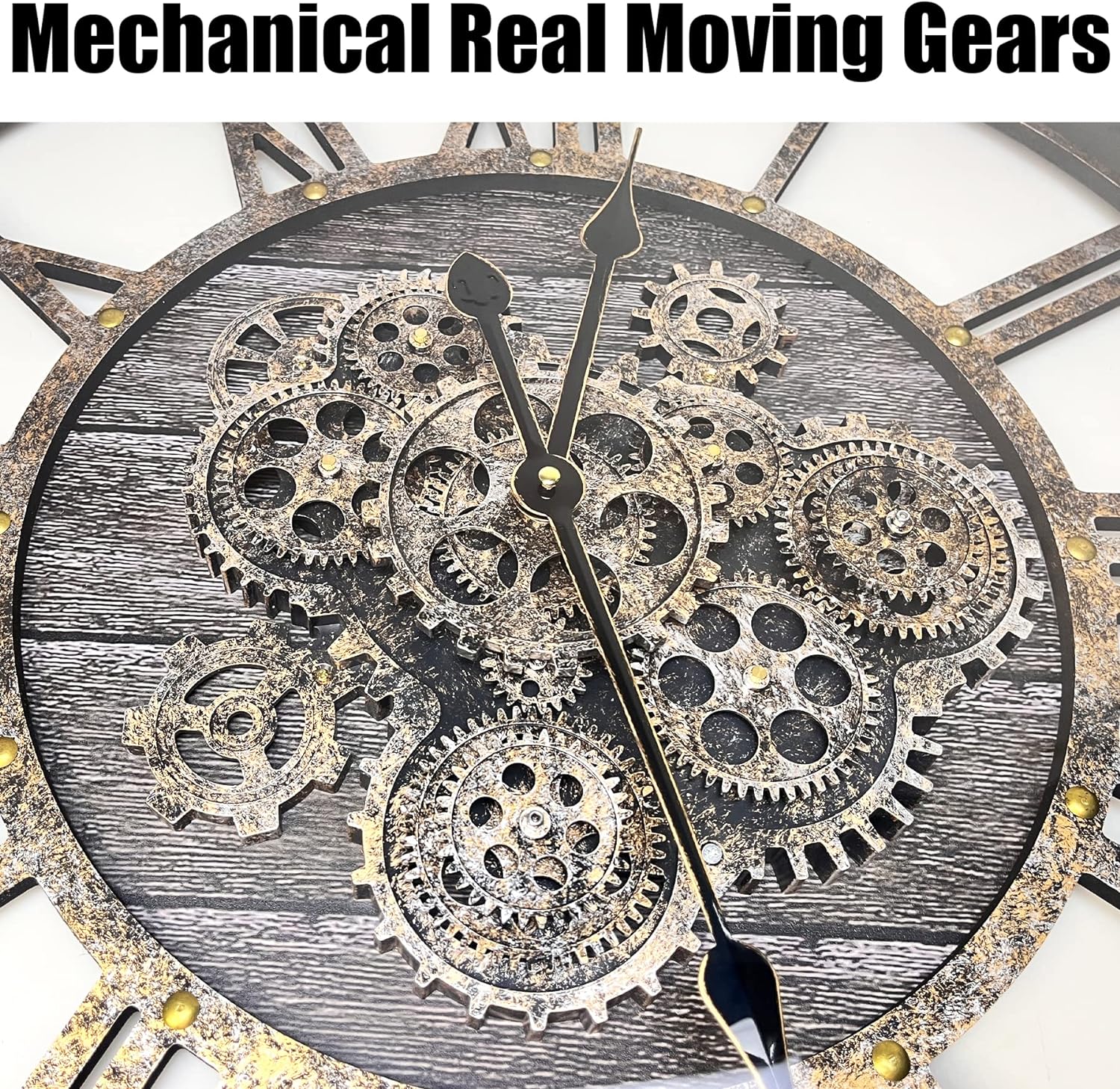 - 🧭【Real Moving Gears Wall Clock】The large rustic wall clock is design with multi-real moving gears, put battery in, various gears start working, makes a subtle relaxing sound and makes a living element in the environment in where it is placed, vintage and magical, catch all eyes of visits