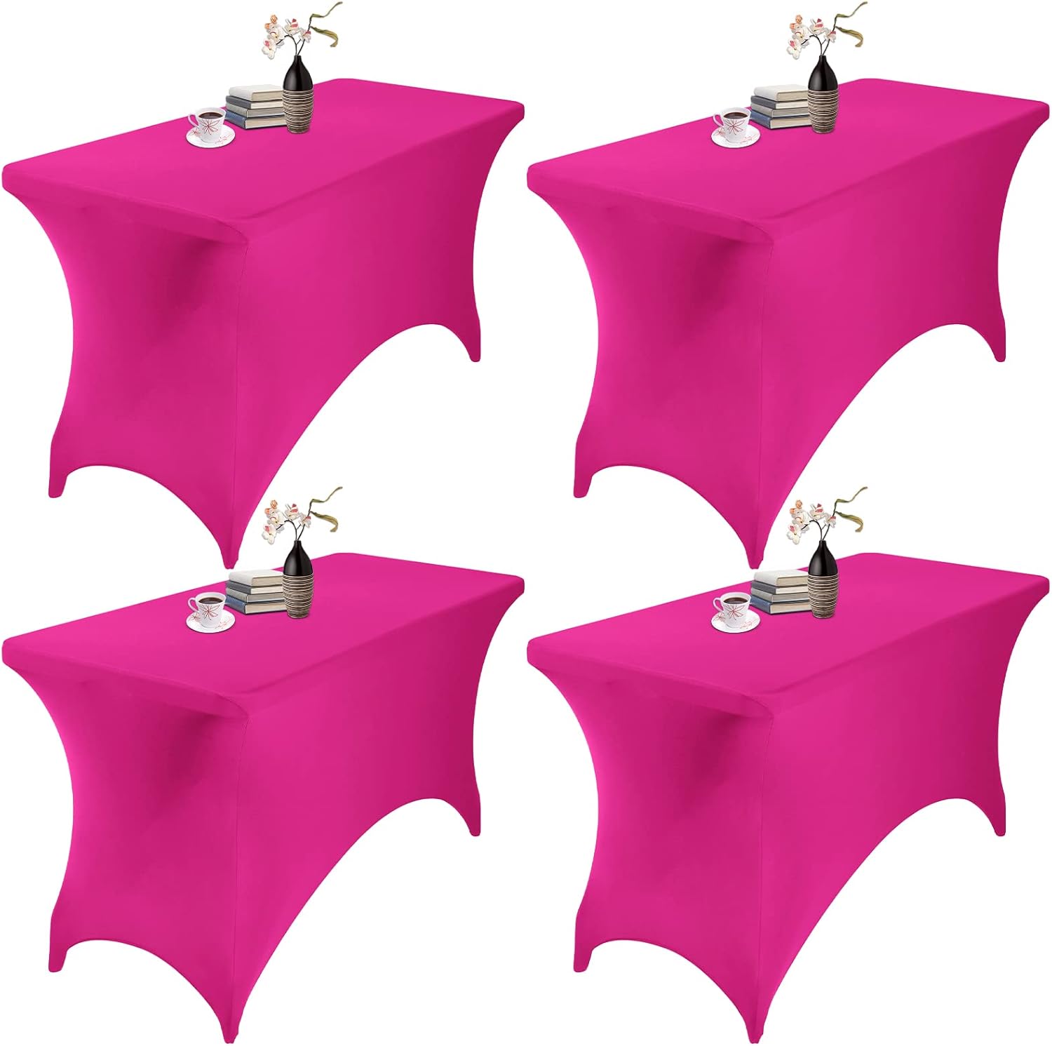 4Pack Spandex Waterproof Table Covers 4ft,Spandex 4ft Waterproof Table Cover for Party,Wedding, Banquet, and Events(Fuchsia)