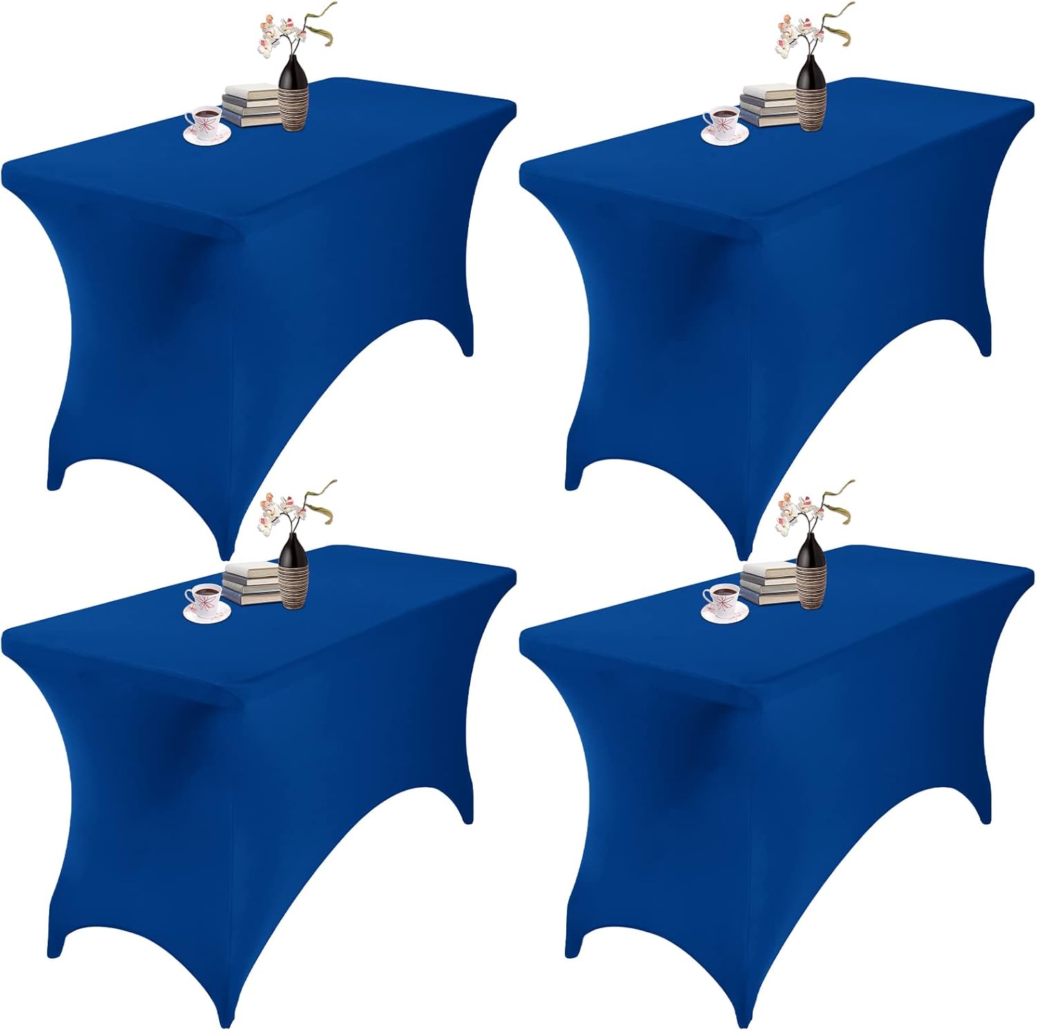 4Pack Spandex Waterproof Table Covers 4ft,Spandex 4ft Waterproof Table Cover for Party,Wedding, Banquet, and Events(Classicbule)