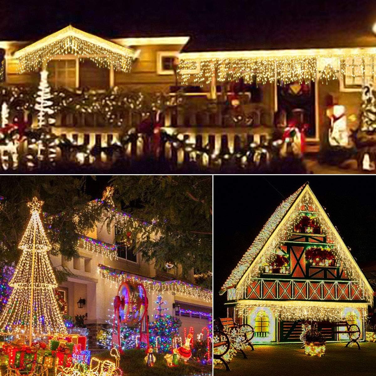 - 【IP65 Waterproof】These Christmas icicle lights are weatherproof, perfect for indoor and outdoor Decorations, making your holiday Christmas festive and cheerful.
