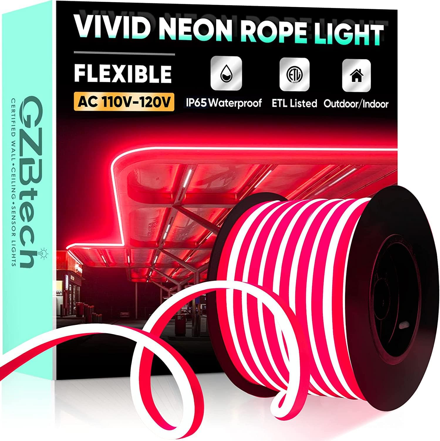 - ETL Listed & High Quality --The power plug of our led rope light is UL listed. Built-in fuse design for increased safety and reliability. GZBtech vivid neon rope light uses high-quality120 LEDs/M SMD 2835 LED chips and PVC soft glue, smooth surface and anti-yellowing,without spots or dark dots,brighter light and low power consumption.