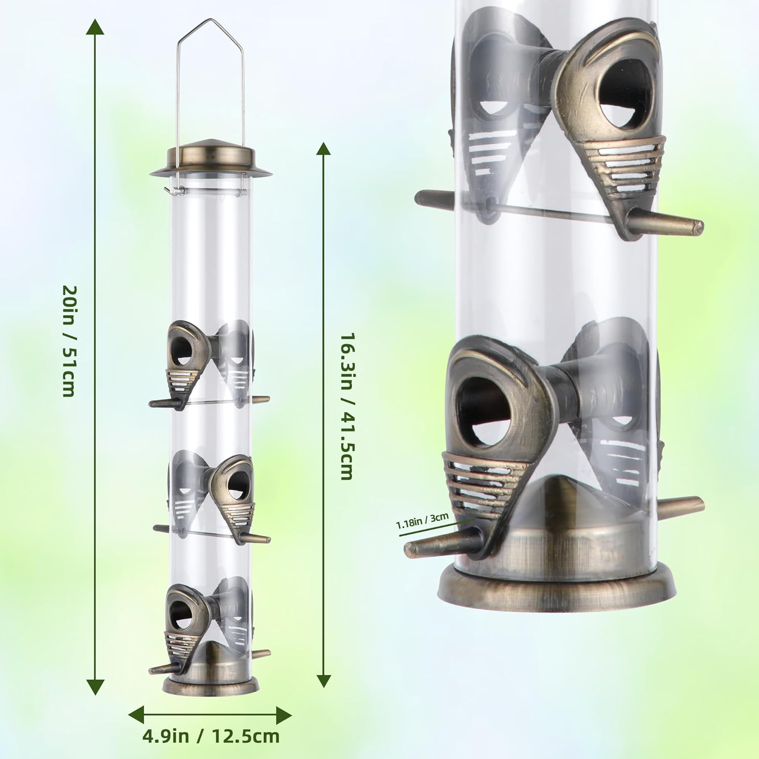 - Unique and convenient tube bird feeder: New lid design, this bird feeders for outdoors is very convenient to use. You can hang the wild bird feeders in the garden, patio, balcony,finch feeders for outside adds a touch of life and fun to your garden