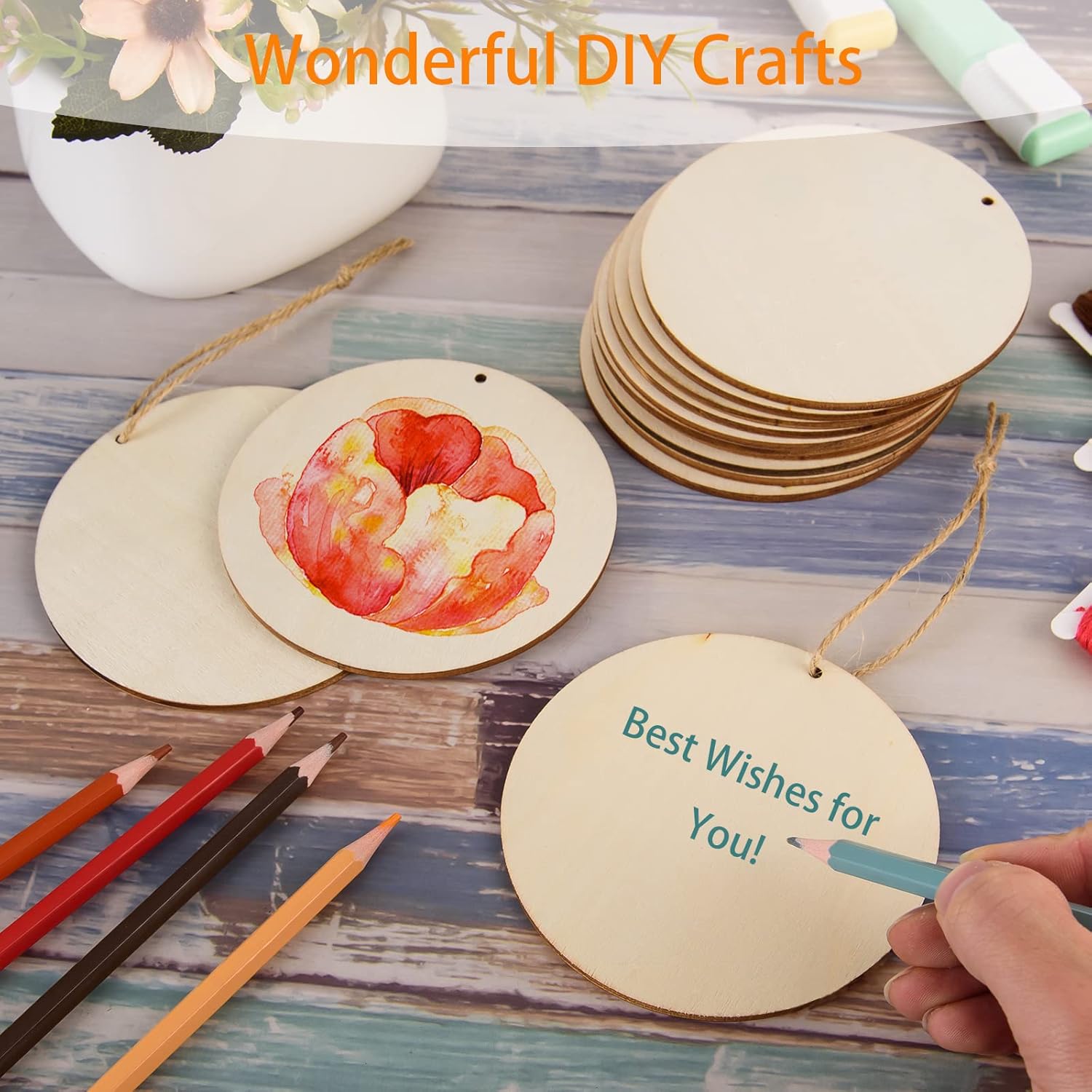 - Wide Applications: the unfinished wooden circles can be used for DIY anything you want, such as present tags, hangers, photo props, carvings, handwritten tags, wish cards, door wreaths, sign making, clocks, game board, etc, create wonderful decorations for Thanksgiving Day, Halloween, Christmas, wedding, birthday, baby shower, house and more