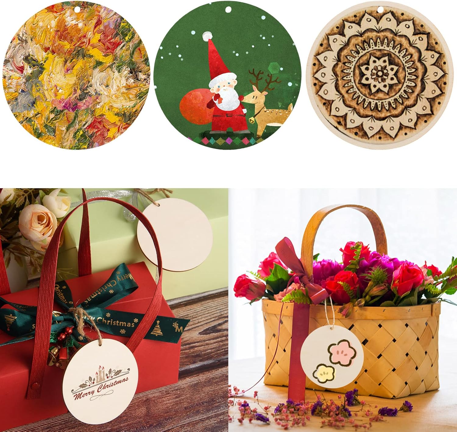 - Fun to DIY: the round wooden tags are designed with a blank smooth surface, you and your children can stain or paint on the wooden disc, make different styles of handmade tags, present tags or holiday decorations for your family members and friends