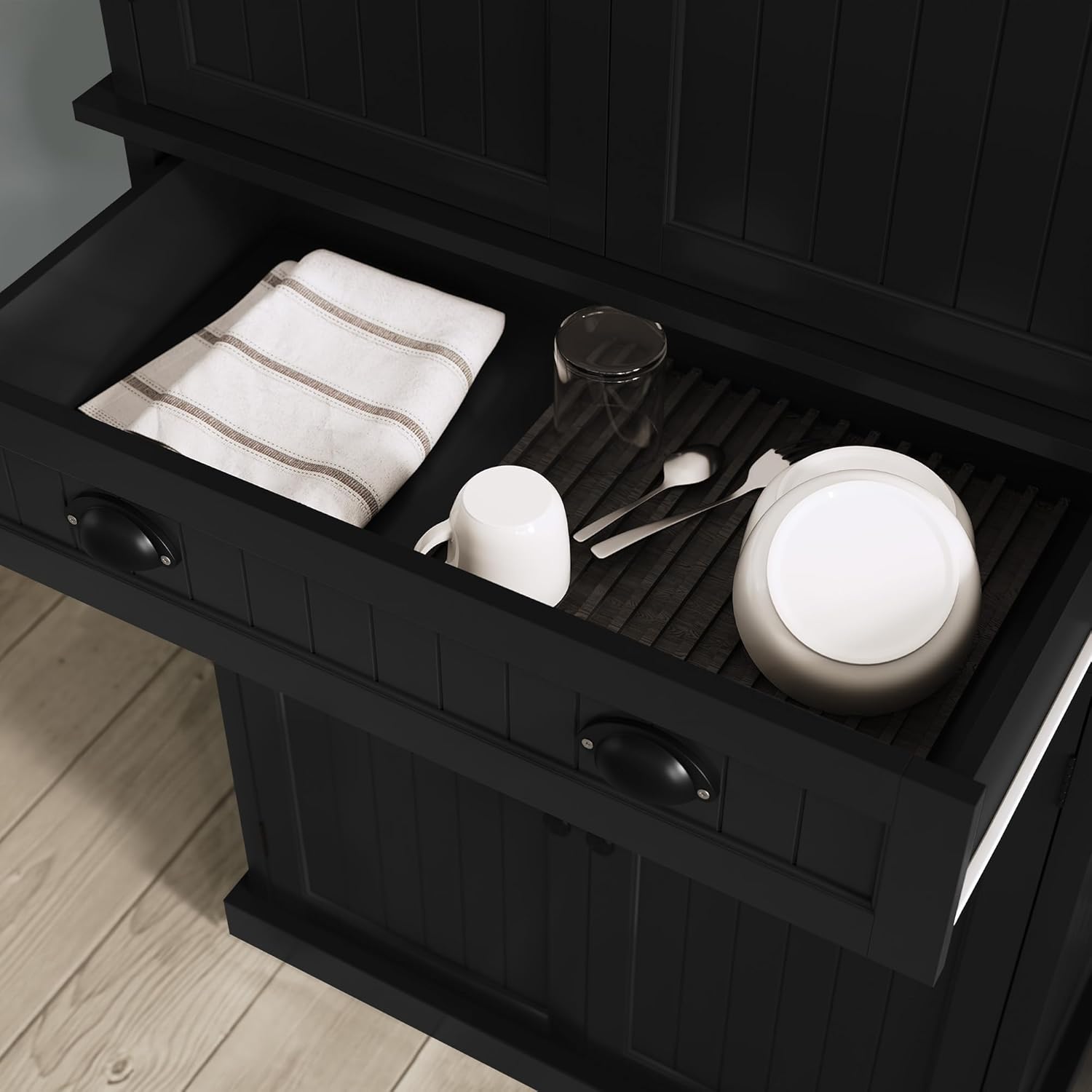 - 【Large Storage Space】The tall pantry features a single center drawer and both the upper and lower cabinet with 2 fixed and 2 adjustable shelves, which allow you to adjust the height in 3 levels to meet your individual needs. Pantry cabinets are perfect to store living goods, small appliances, cookware, and a variety of kitchen supplies.