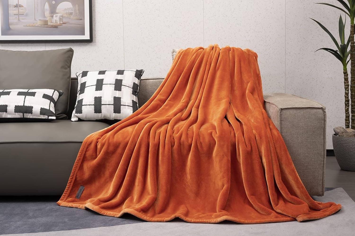 Mellowdy Extra Thick Hearty Plush Flannel Blanket (Burnt Orange, 60x80) - 500GSM Twin Size Warm Blanket for Winter, Fall | Soft, Fluffy, Cuddly, Perfect for Bed, Oversized Throw for Couch, Sofa