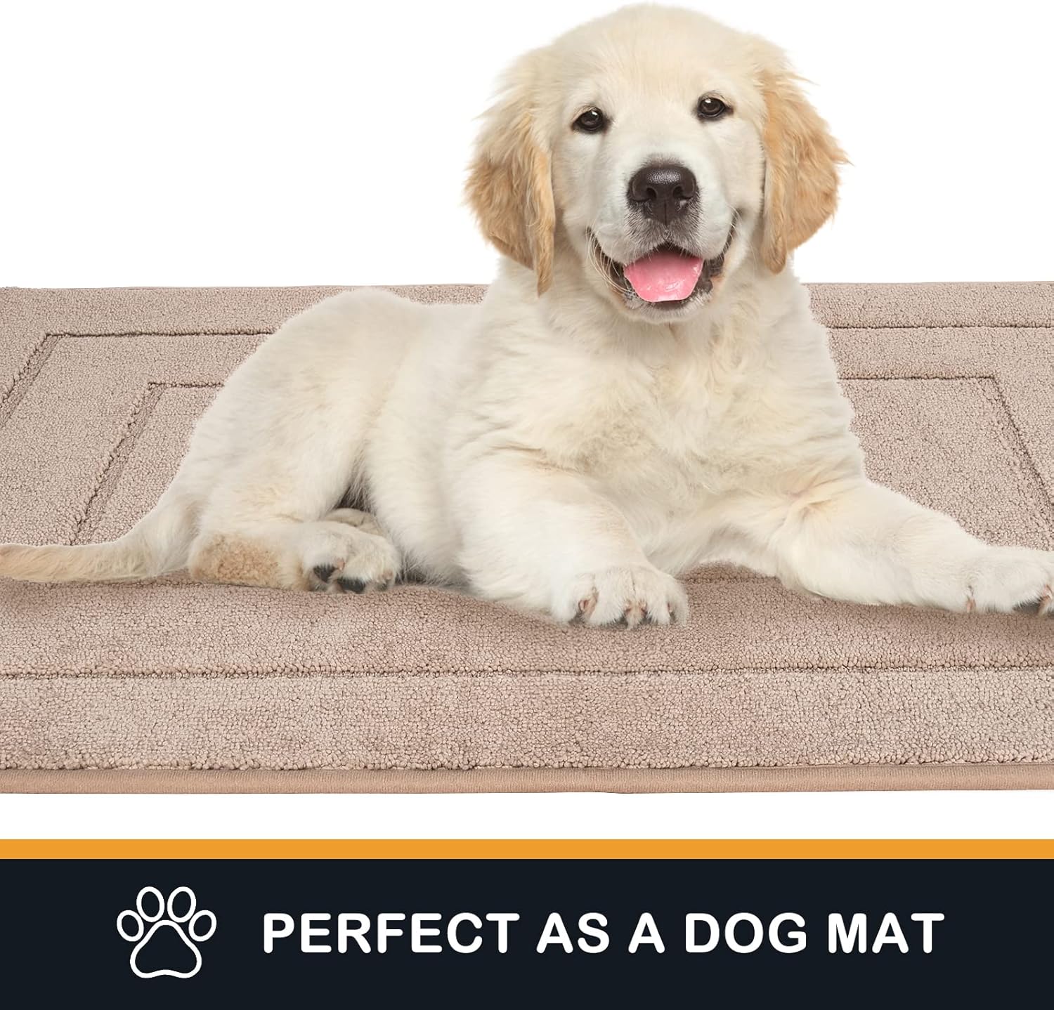 PURRUGS Dirt Trapping Door Mat 24" x 35.5", Non-Slip/Skid Machine Washable Entryway Rug, Dog Doormat, Super Absorbent Welcome Mat for Muddy Wet Shoes and Paws, Beige