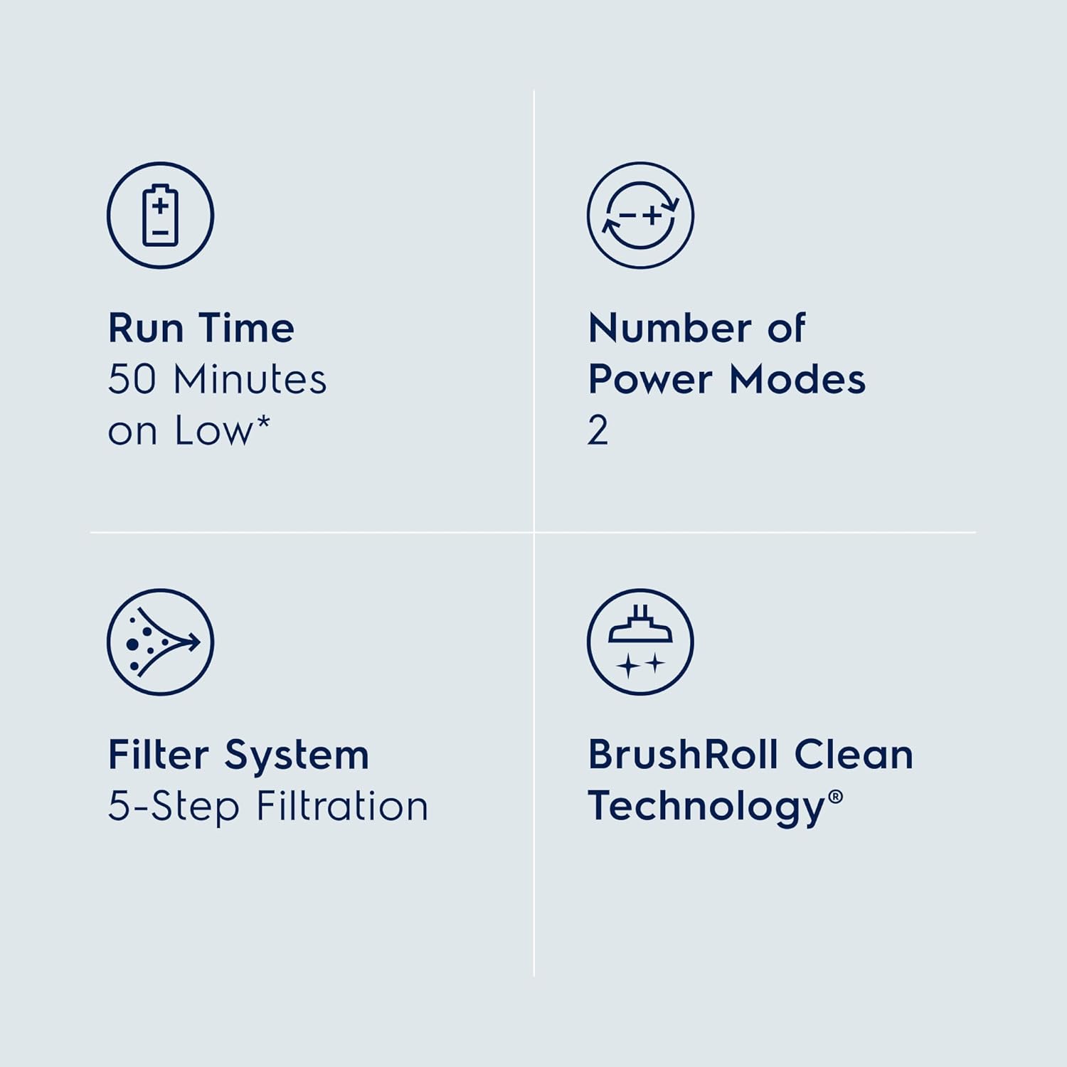 - Long-Lasting Cordless Power: Enjoy up to 50 minutes* of run time with the high-performance battery, providing consistent cleaning power without needing to recharge