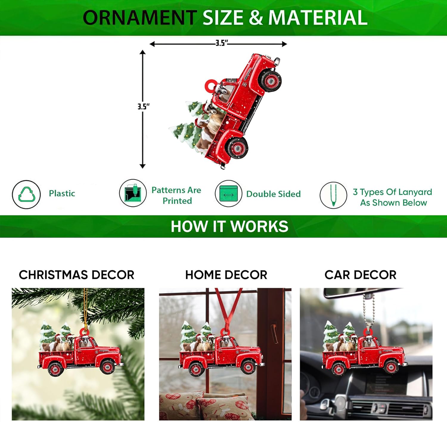 - Versatile Hanging Options: Comes with three lanyards (steel, red ribbon, and gold glitter wire), providing multiple display options, whether on your tree, as a car accessory, or in your home.