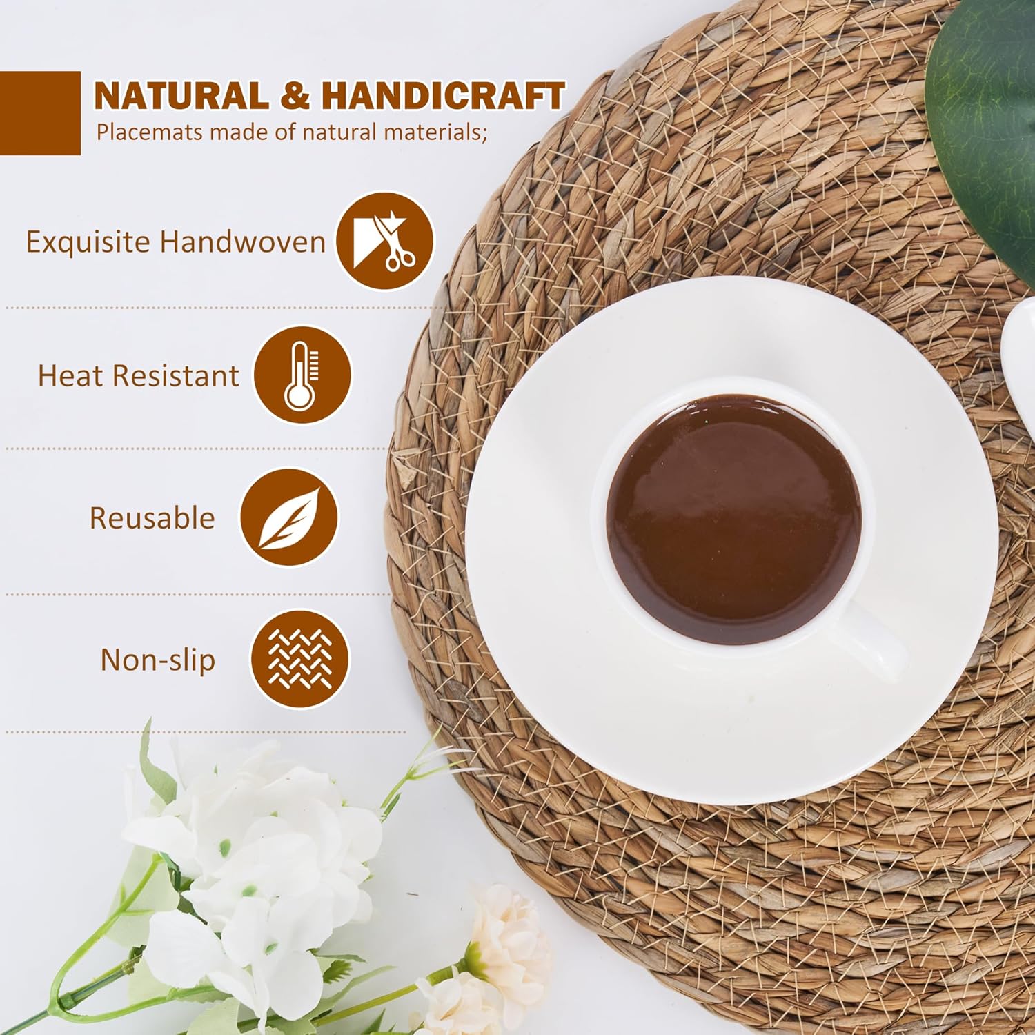 - 【Protection &Heat Resistant】:Defined Deco woven placemats are 11.8 inch in diameter, Made of 100% natural water hyacinth, friendly to kids, the elderly or pregnant women, compact and rigorous weaving provide durable quality and soft touch.Our braided circle placemats are hand-woven and more heat resistance than other straw mats, cloth mats and rubber pads.