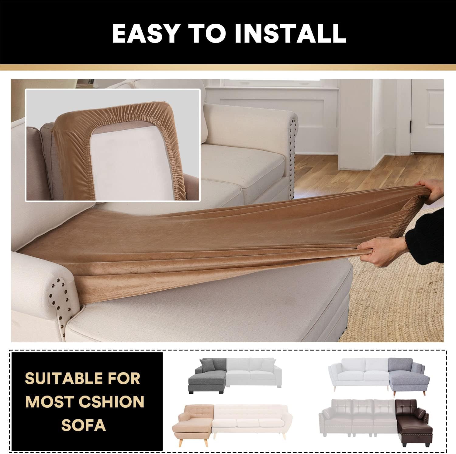 PrinceDeco Sectional Couch Covers Velvet Couch Cover for Dogs Washable L Shaped Couch Cover 1 Piece Individual Sectional Couch Covers with Elastic Bottom(Chaise Lounge,Camel)