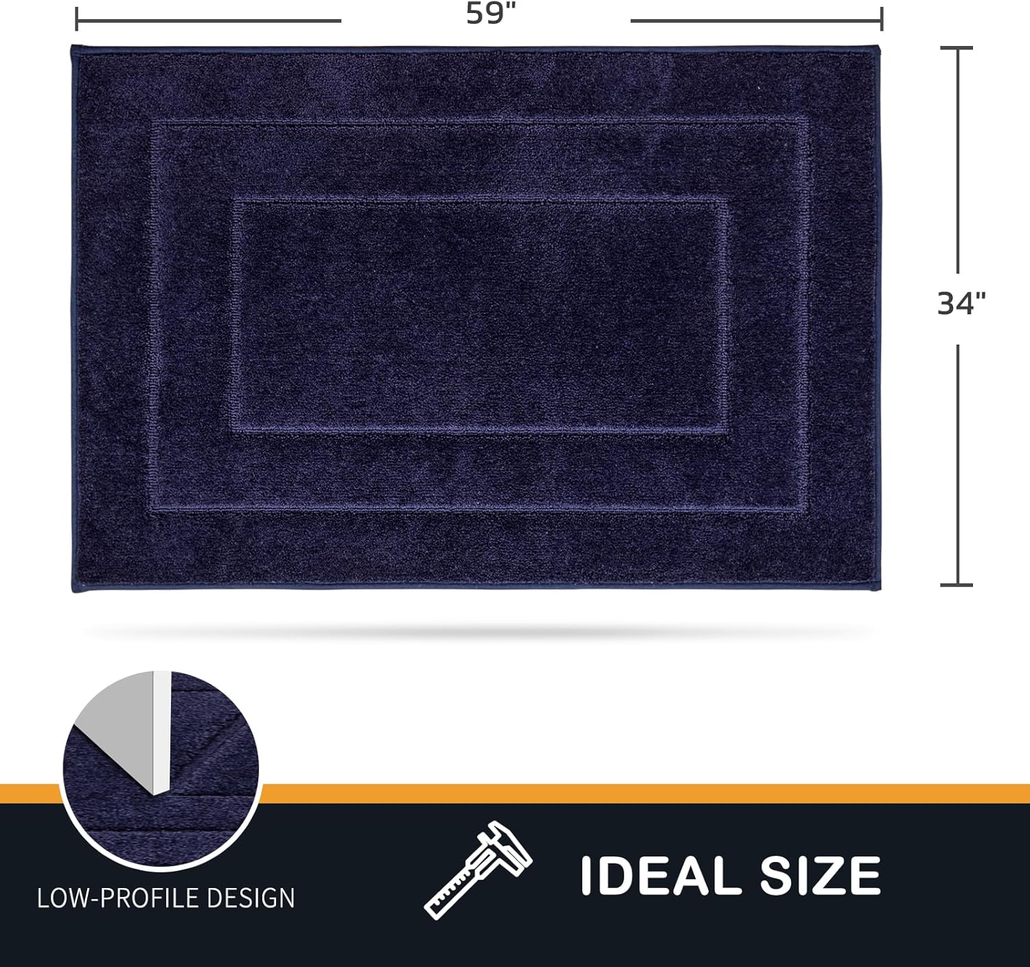 PURRUGS Dirt Trapping Door Mat 34" x 59", Non-Slip/Skid Machine Washable Entryway Area Rug, Dog Doormat, Super Absorbent Welcome Mat for Muddy Wet Shoes and Paws, Navy Blue