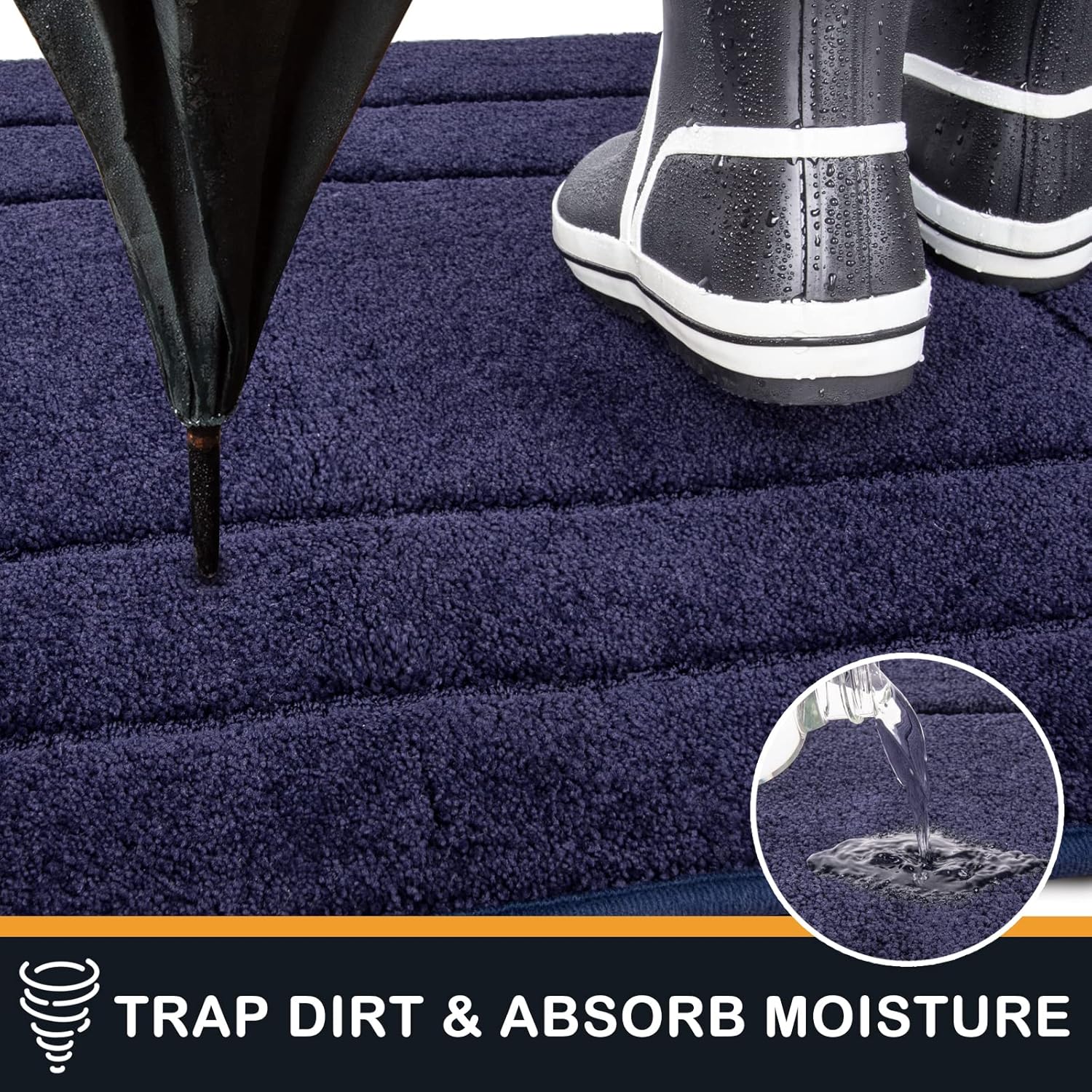 - TRAP DIRT & MOISTURE: Countless polyester fibers can effectively catch water and dirt off the bottom of shoes. Our dirt trapping doormat can keep indoor areas of your home or business clean, dry and safe, especially for the rainy, snowy, or muddy weather. For the best results, use the largest indoor door mats you have space for.
