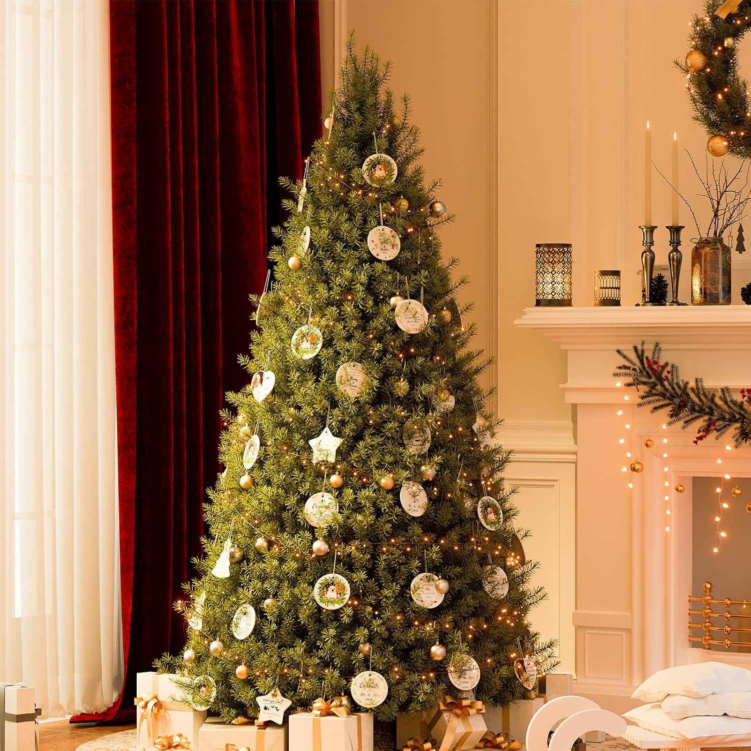 - ❤️ High-Quality Ceramic Material ❤️ The personalized ornaments are made of premium ceramic, measuring approximately 3 inches—easy to carry or give gift. Compared to wooden ornaments, ceramic offers clearer, more high-definition printing and a luxurious look. The bright, fade-resistant colors preserve your memories vividly, allowing you to cherish this picture ornaments for christmas tree for years to come