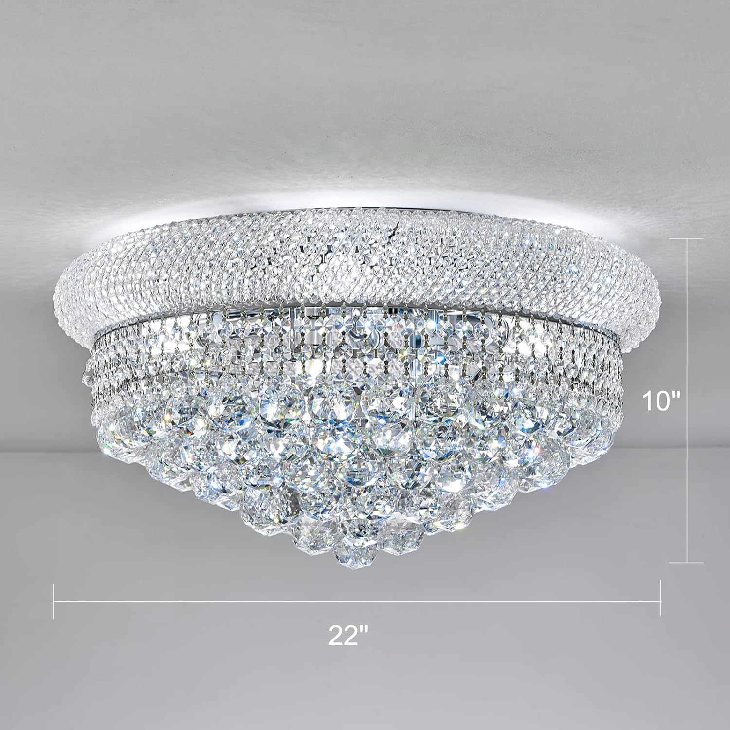 9-Light Crystal Flush Mount Chandelier Ceiling Light Fixture for Living Room Dining Room Bedroom Foyer Entryway Hallway Closet Bathroom (Chrome D22)